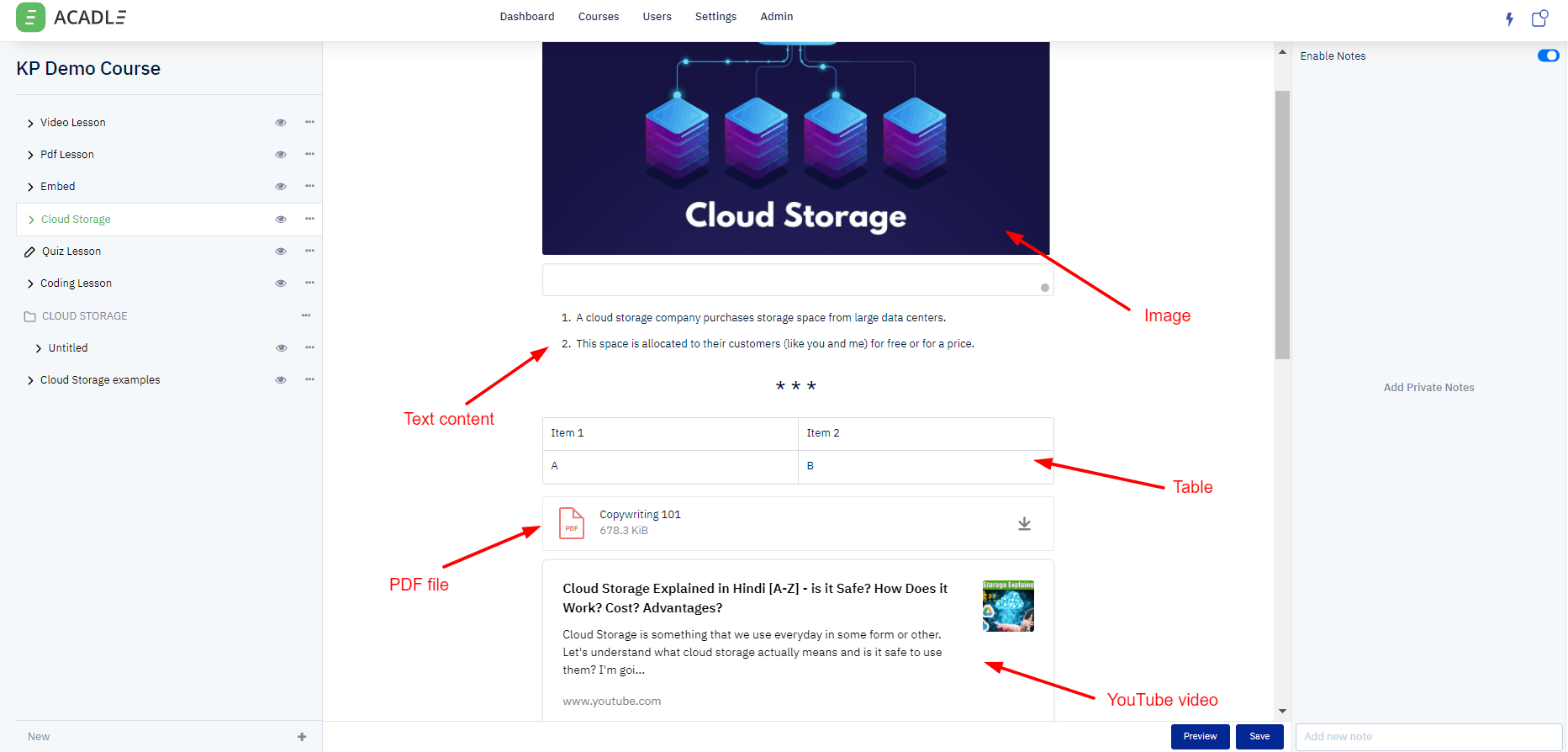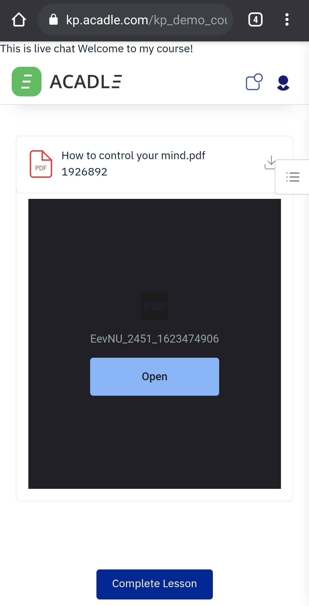 PDF lessons are very important if you intend to offer text based content to your students. Acadle lets you upload PDF files that can be easily previewed and downloaded.