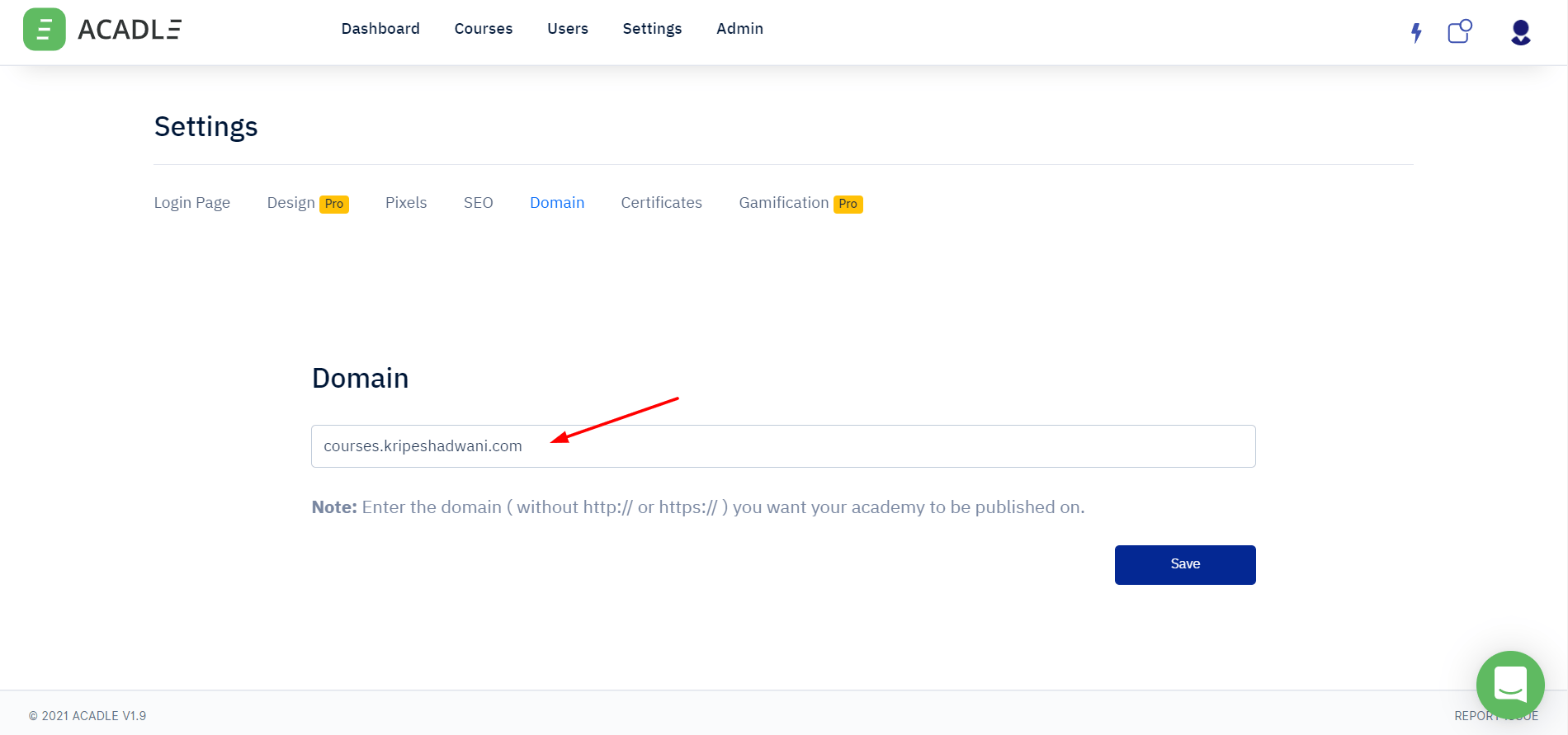 When you create an account on Acadle, your academy website is by default a sub-domain of Acadle (E.g. kp.acadle.com). It also comes with a free SSL Certificate protection.