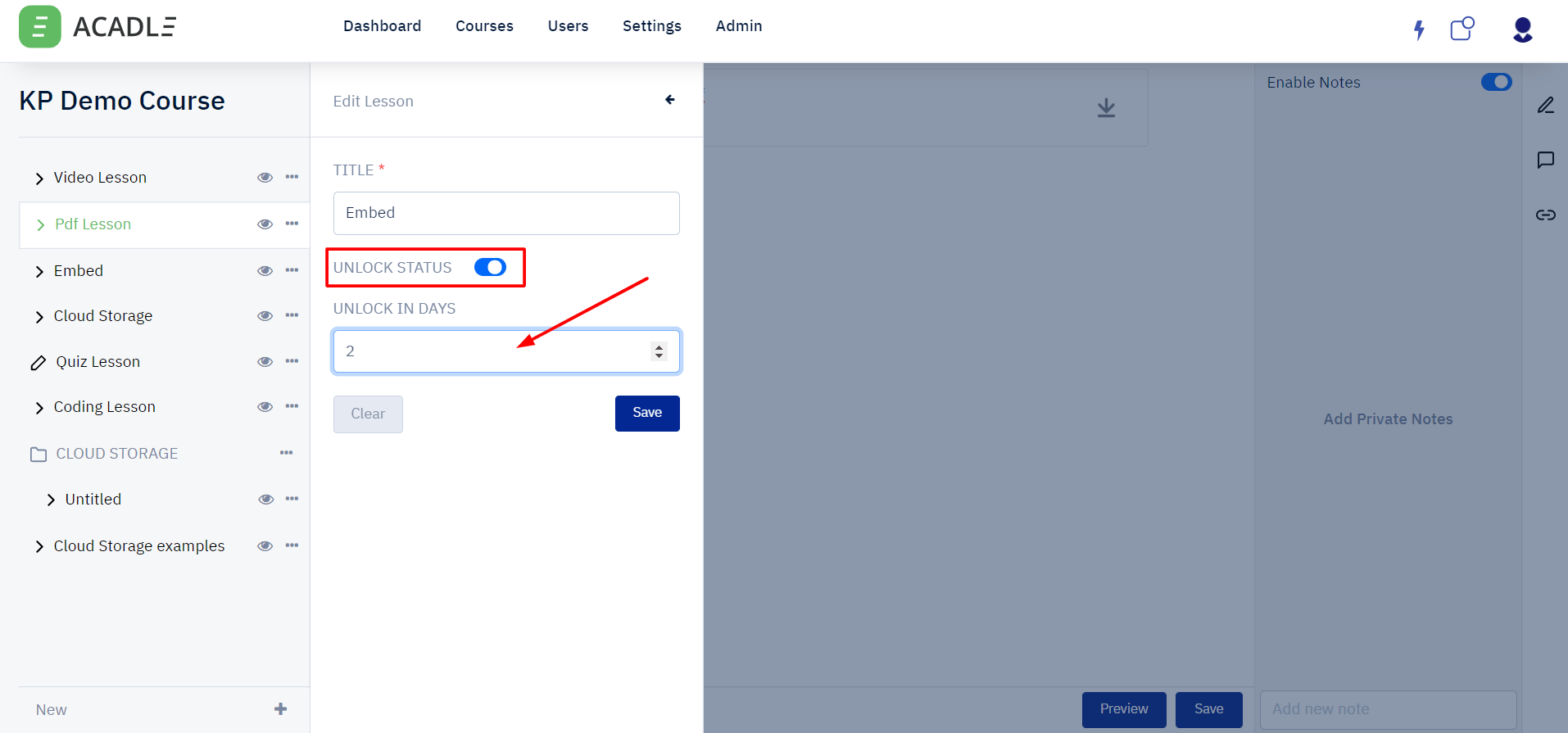 Within every lesson, you also get the Private Notes option. Students can take down their personal notes in that space and it wouldn’t be accessible to anyone except them.
