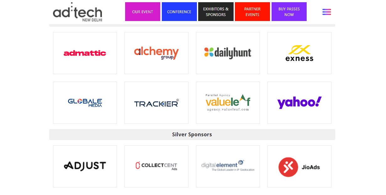 The exhibitors for this glorious event include popular names from the e-commerce, technology, marketing, and retail industries. For instance, JioAds, PaytmAds, Affinity, ShareChat, VCommission, etc.