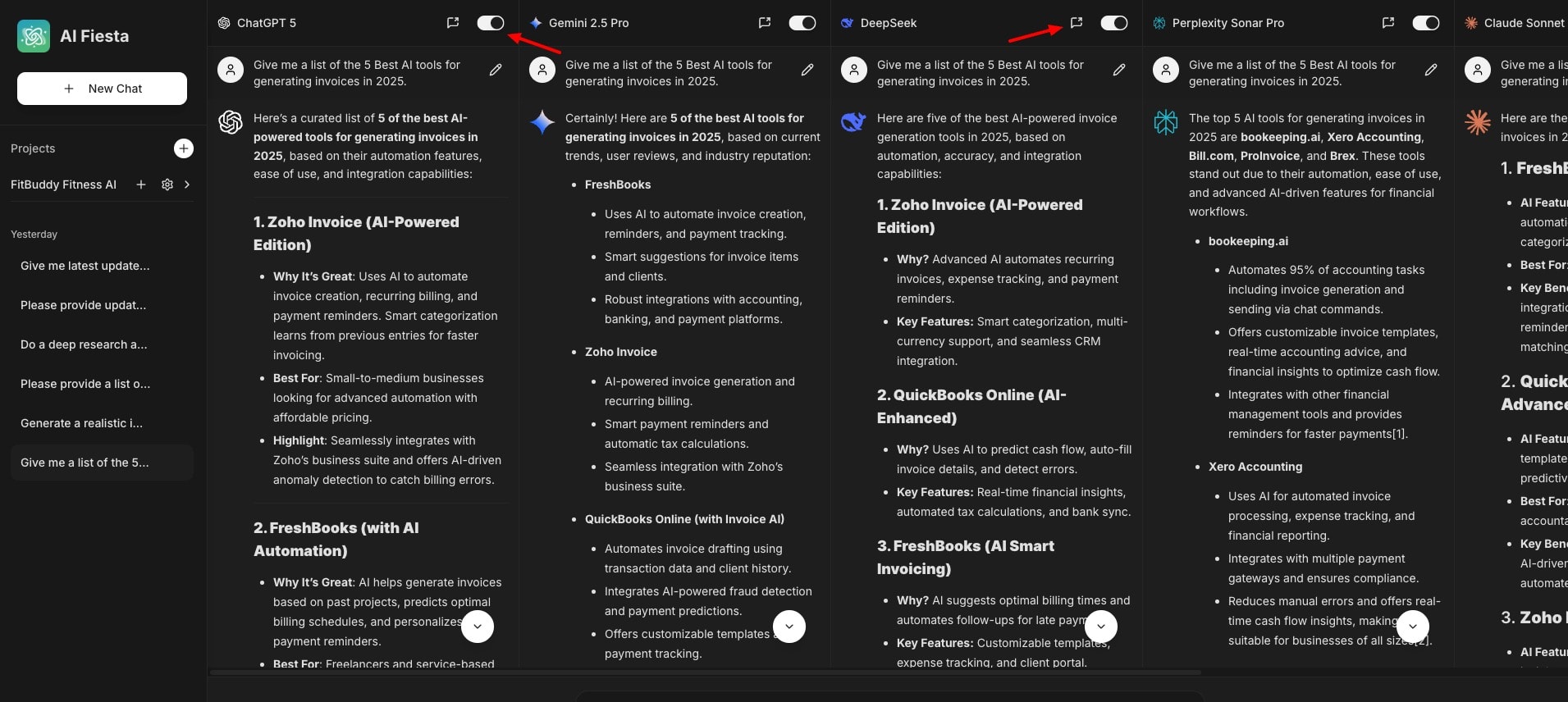 AI Fiesta gives you access to the latest models of powerful AI tools like ChatGPT, Gemini, DeepSeek, Grok, Perplexity, and Claude. Recently, they have introduced new AI models and AI Fiesta now boasts a total of 16 AI models.