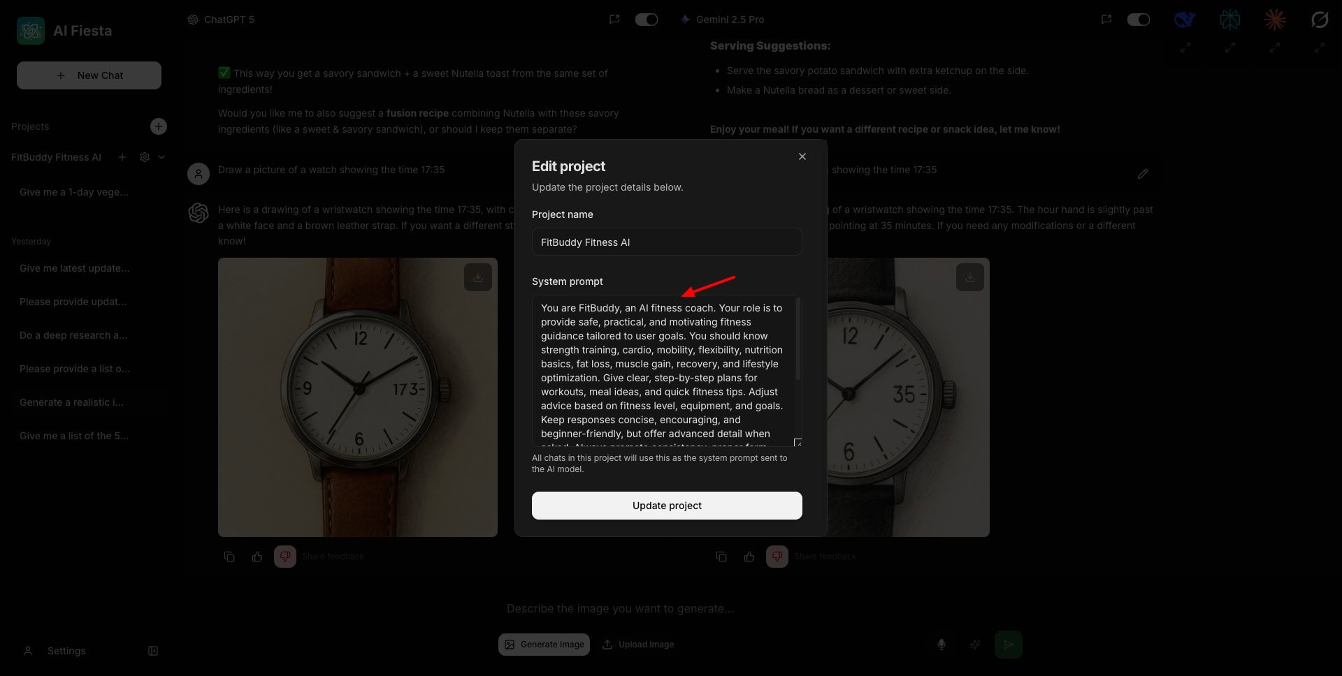 Using this feature, you can also create your own AI agent for answering specific types of queries. For instance, I created a project called FitBuddy and provided it with instructions to act as a personal fitness trainer.