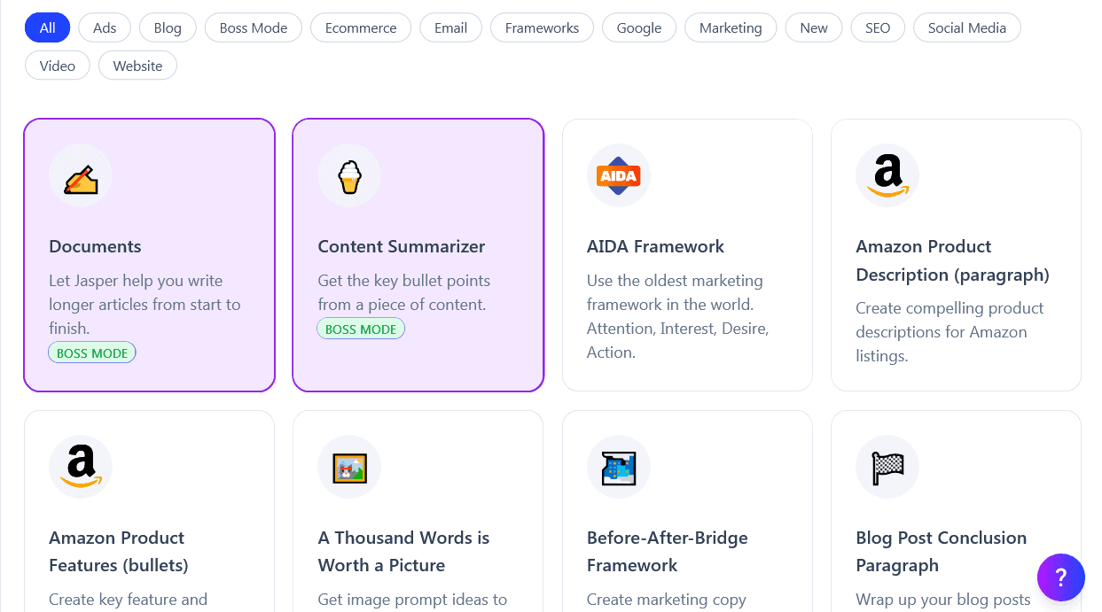 Jasper AI is a polished and power-packed AI content writer with a modern interface and a range of AI frameworks. It offers a powerful long-form editor, a library of pre-made recipes, good-quality outputs, and a handy Chrome extension.
