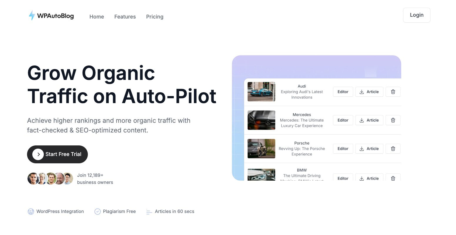 | WPAutoBlog | 25 articles/month | $49 | Visit |