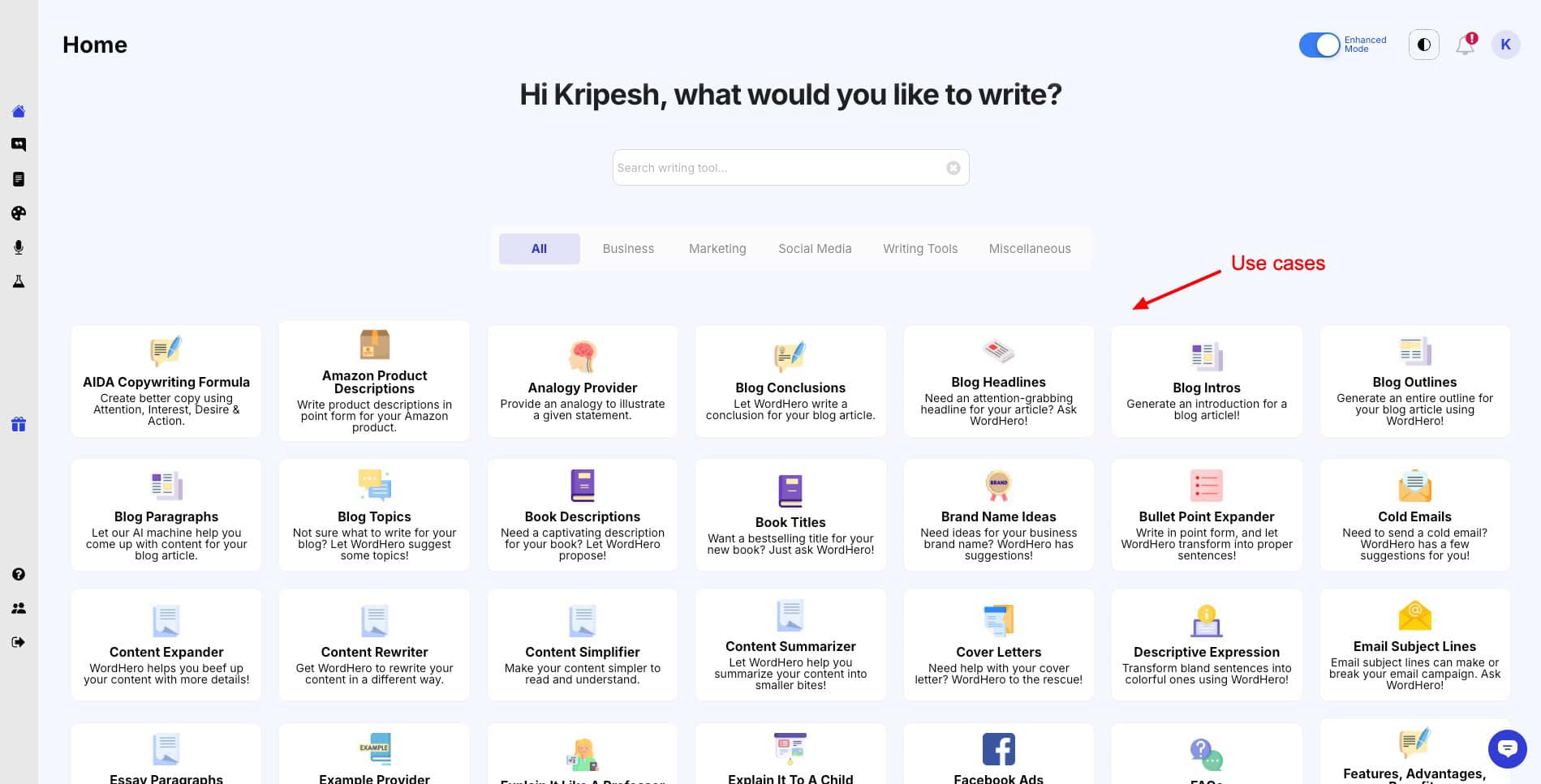 WordHero is an AI-powered content writing platform. It supports 50+ AI writing tools and over 100+ languages for creating a range of content. You can create anything from blogs, sales copies, ad copies, social media posts, product descriptions, etc.