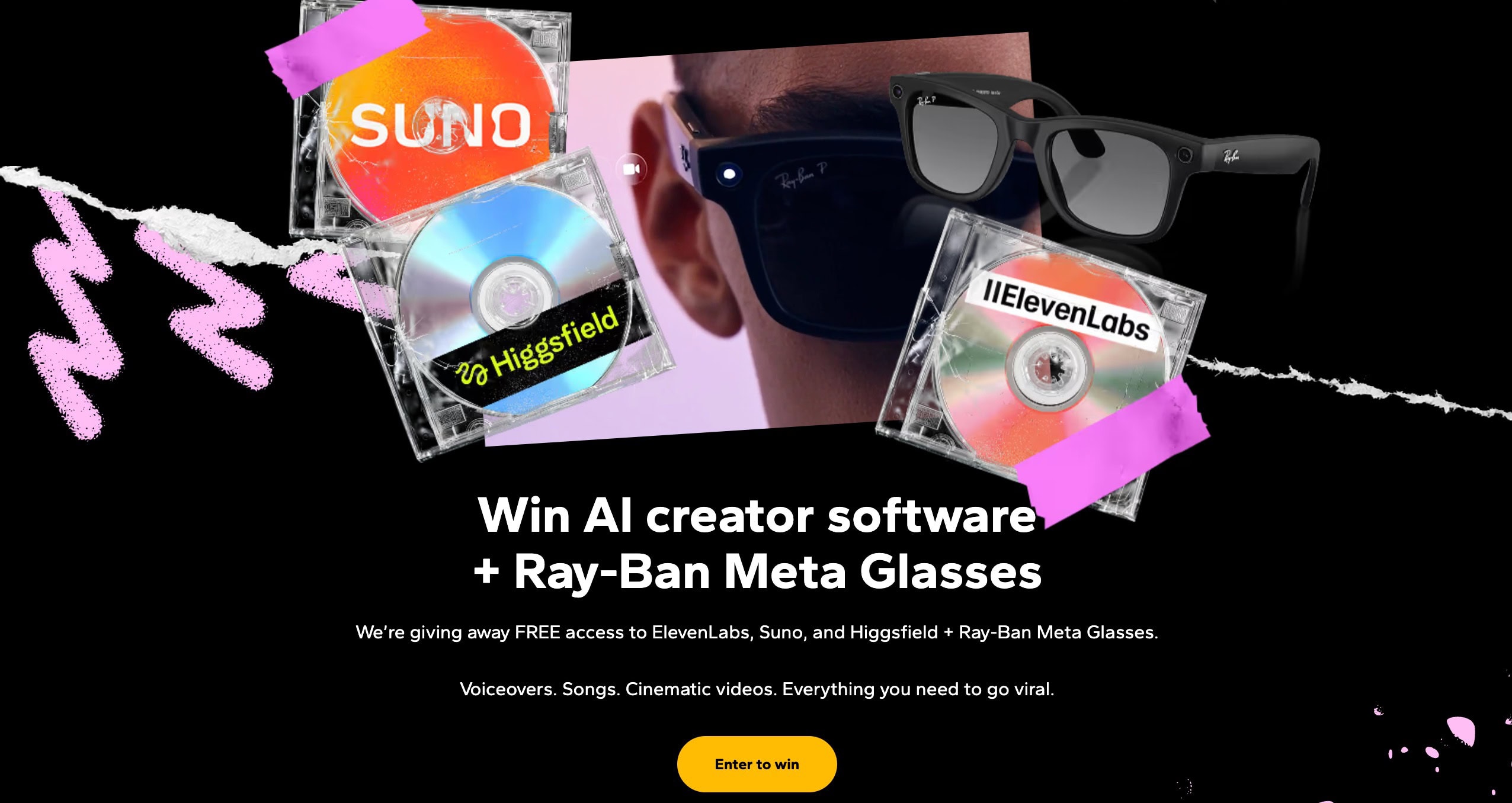 In the Black Friday Giveaway, 3 lucky winners will get free access to ElevenLabs, Suno, Higgsfield, and Ray-Ban Meta glasses. Additionally, 100 winners will also get limited-edition Black Friday 2025 Pop-Punk swag from AppSumo.