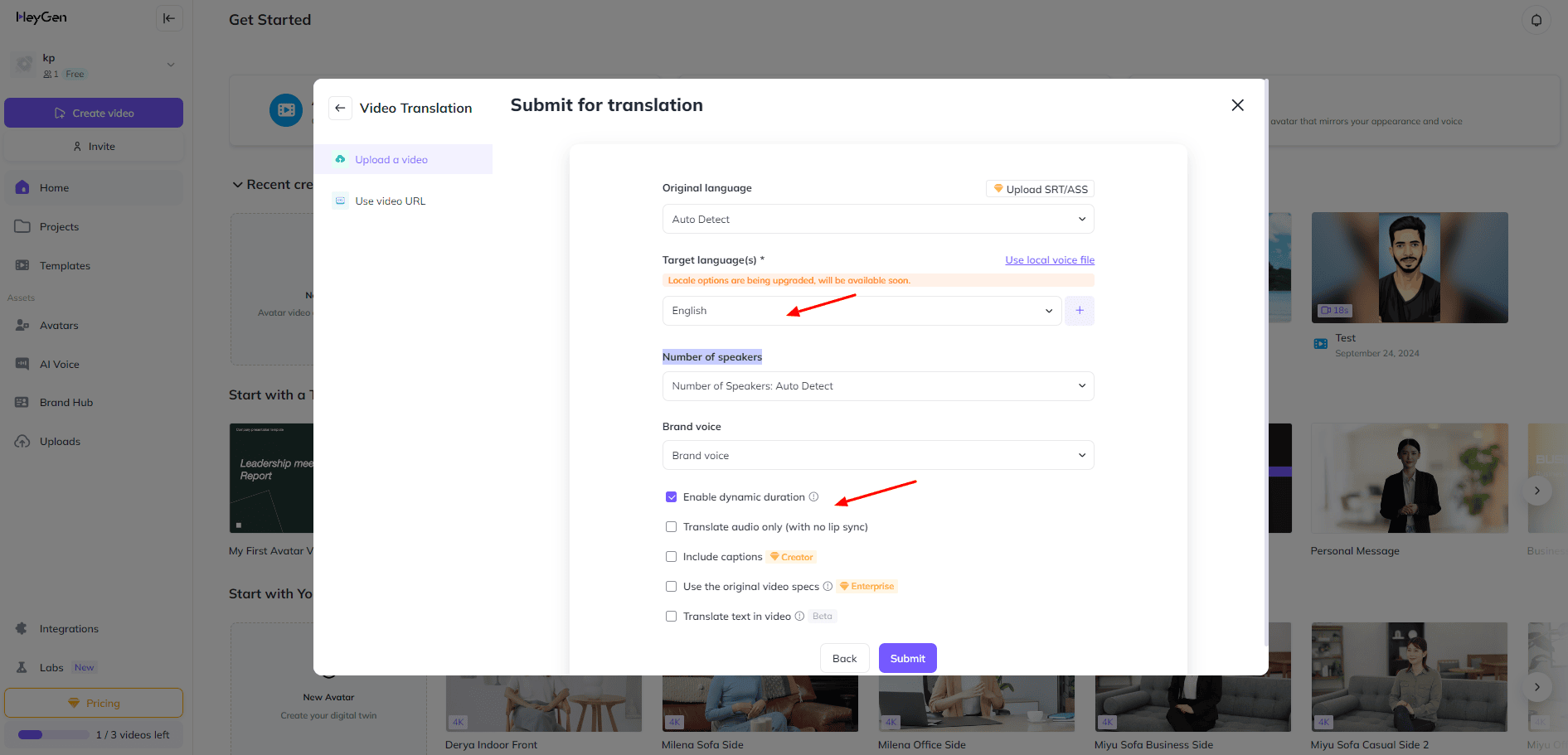 Under additional settings, you can translate your audio with no lip sync, translate the text in video, etc. I liked the dynamic duration setting, which adjusts the video duration according to the translated version.