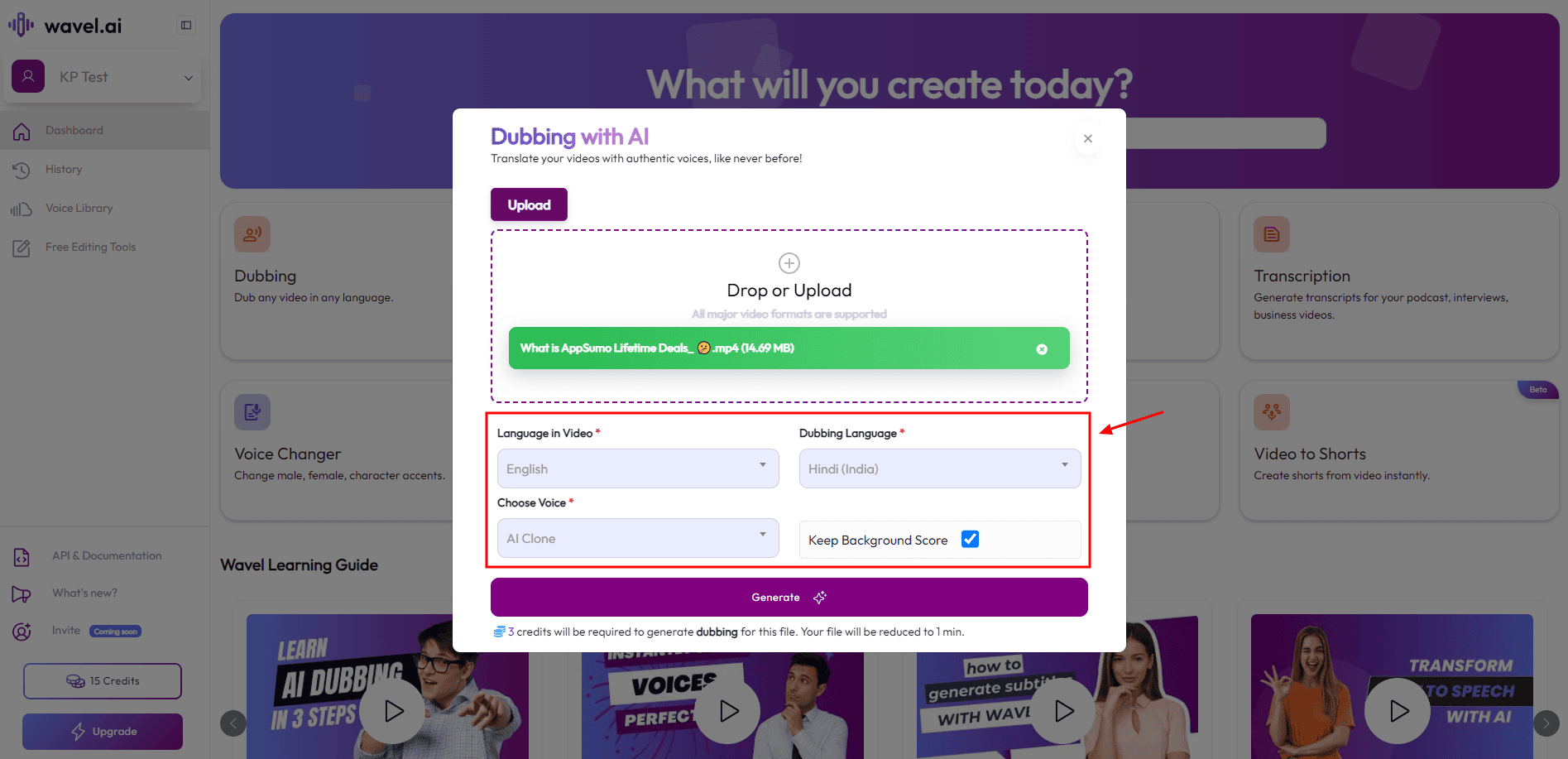 To start with Wavel AI, you need to upload your original video and choose the source and target language. It supports 55+ languages along with multiple accents. You can also dub your videos in Indian languages like Hindi, Tamil, Telugu, and Marathi.