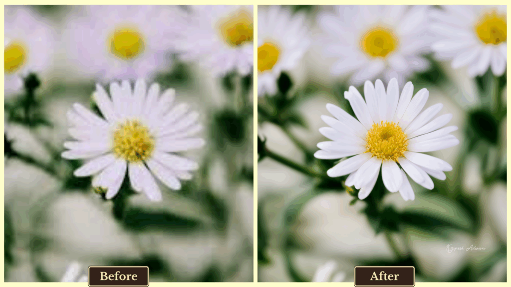 - Unblur Tool: Removes grain and blur from images to restore sharpness and detail.