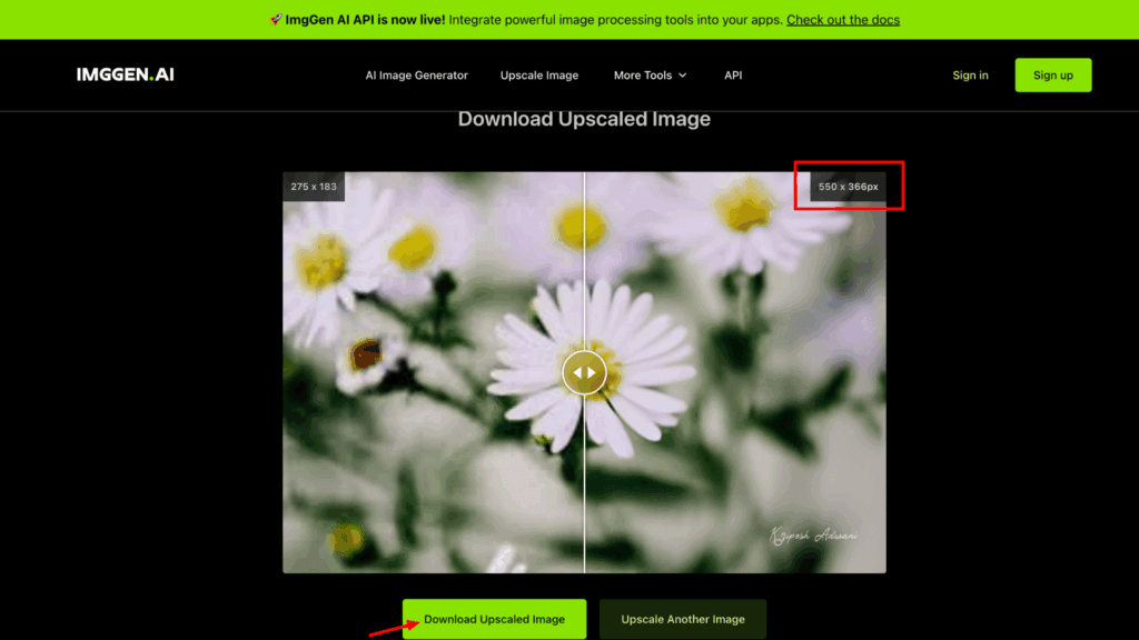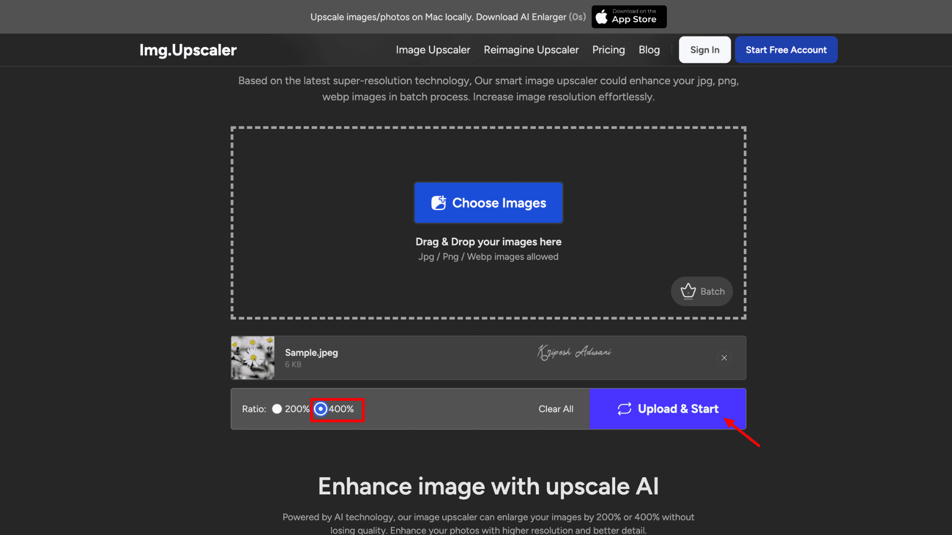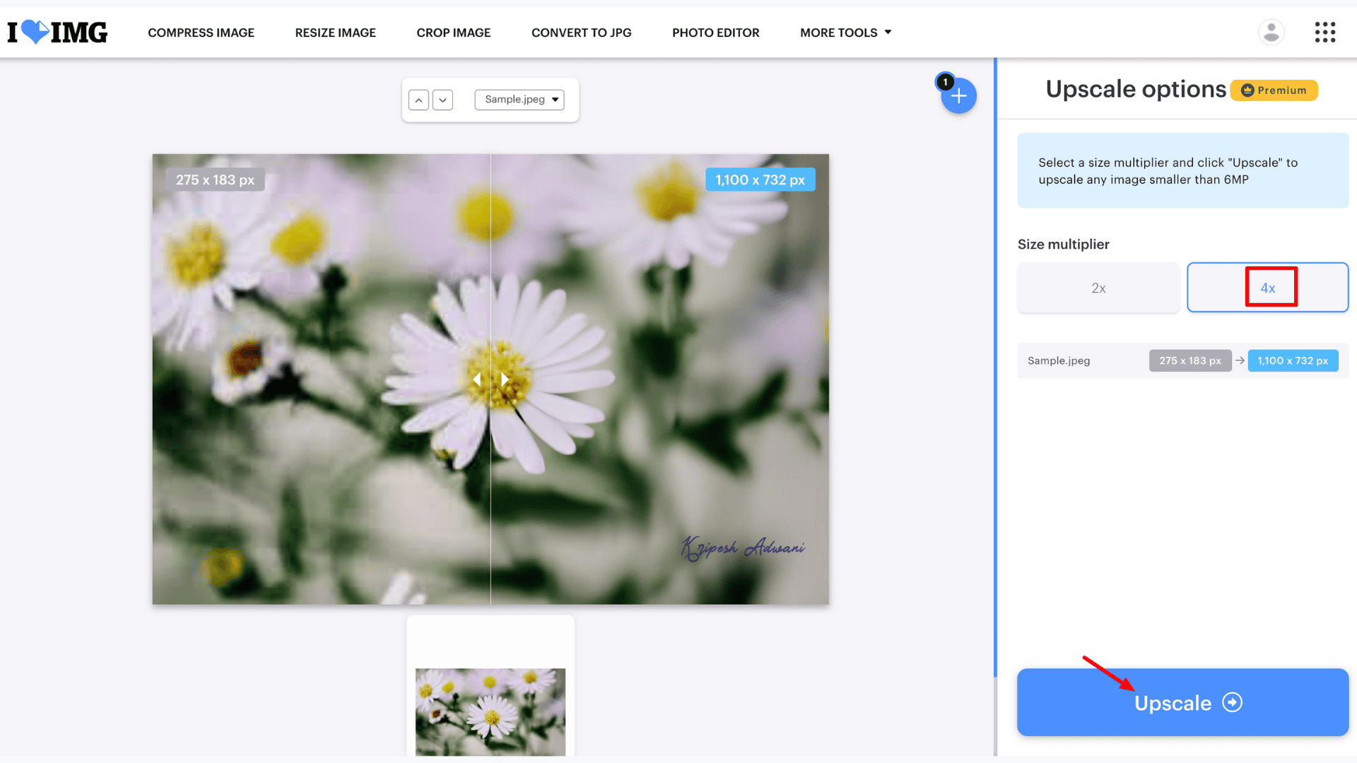 Upon visiting the site, you simply upload an image, choose the upscale size (2X or 4X), and the tool delivers results within seconds. You can upload images up to 6MP resolution.