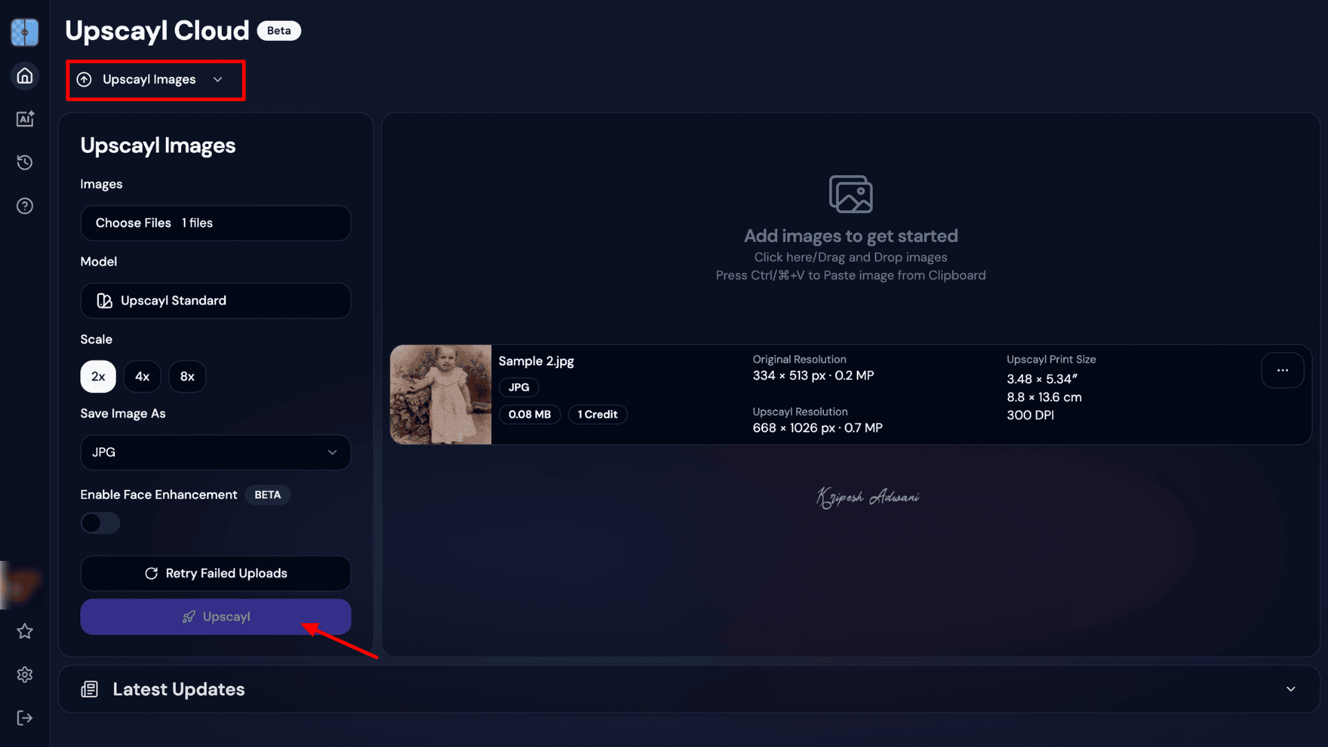 On the homepage, you can simply paste or drag and drop an image. It automatically upscales the image by 2X. You can then choose other upscale levels (1X, 4X, and 8X), and the tool will generate results within seconds.