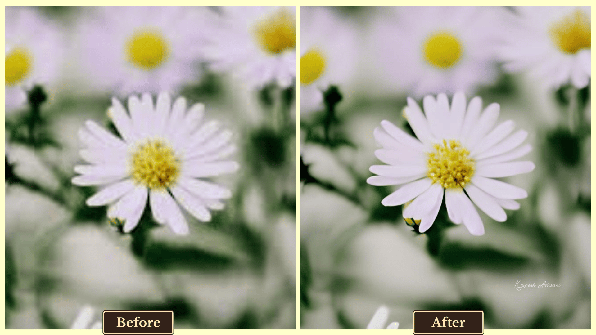 AI Image Upscaling is the process of increasing the resolution of an image using artificial intelligence. For example, you can restore old, blurry family photos, enhance sharpness, and improve overall clarity to breathe new life into your visuals.