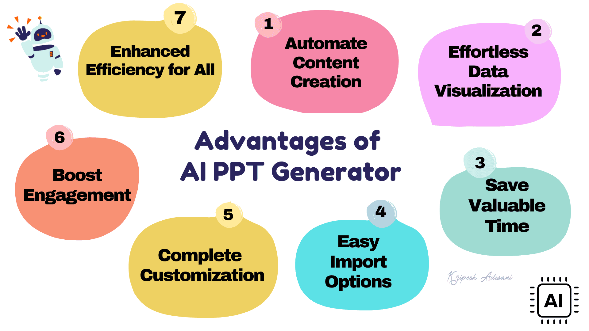 2. Hi Kripesh, Greetings!!! Thanks for sharing the knowledge and guidance on AI presentation makers. Very useful article. Saved several hours.