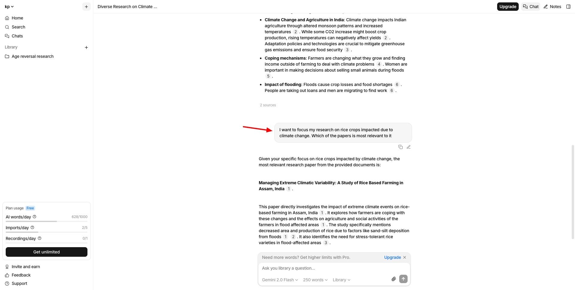 | Anara AI | Combined answers from multiple research papers. | Daily limit of 1000 AI words, 5 uploads, and 1 recording. |