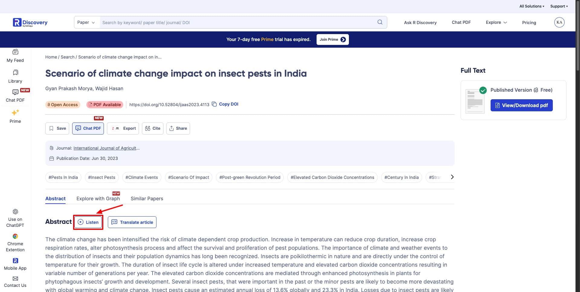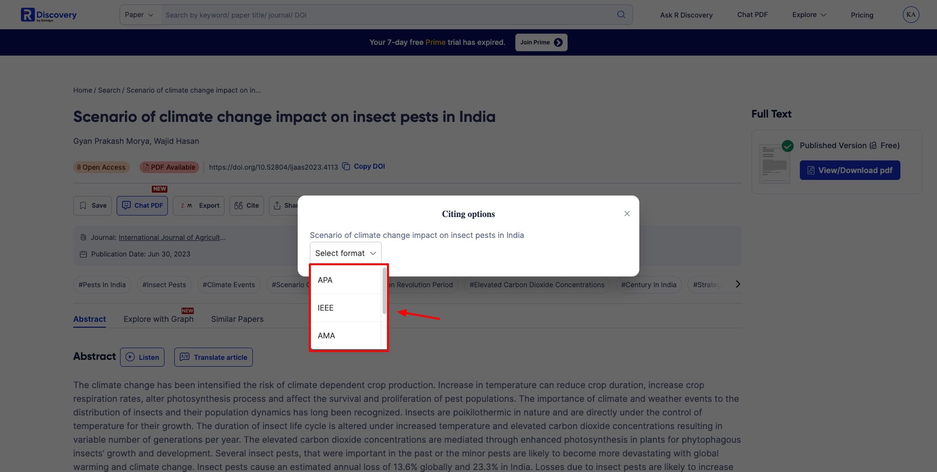 Once you find relevant papers, you can easily cite them in formats of your choice. It gives you 5 popular citation formats: APA, MLA, AMA, IEEE, and Chicago. But my favorite feature is the Listen option. It narrates the abstract of any research paper you want in an AI voice.