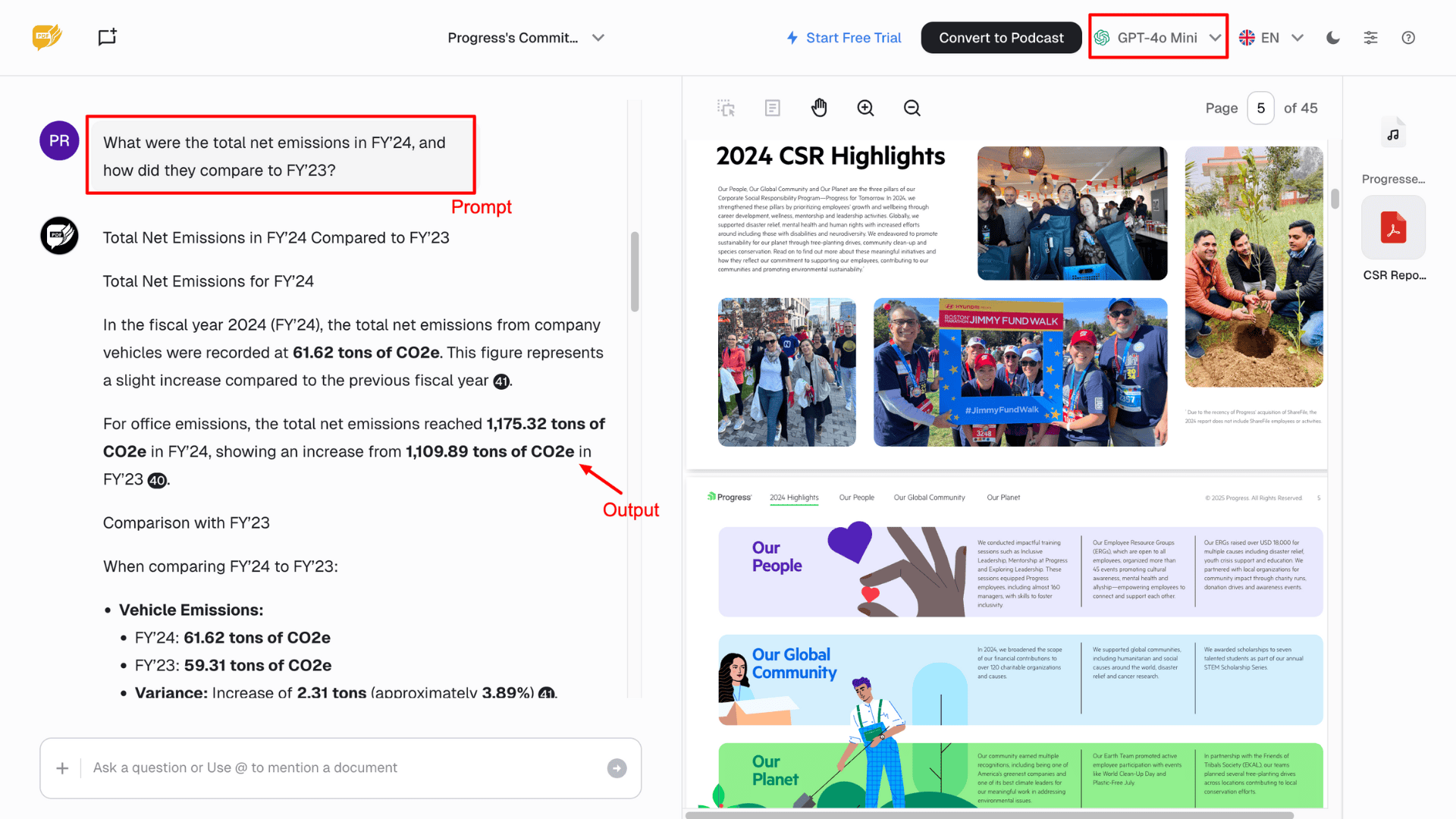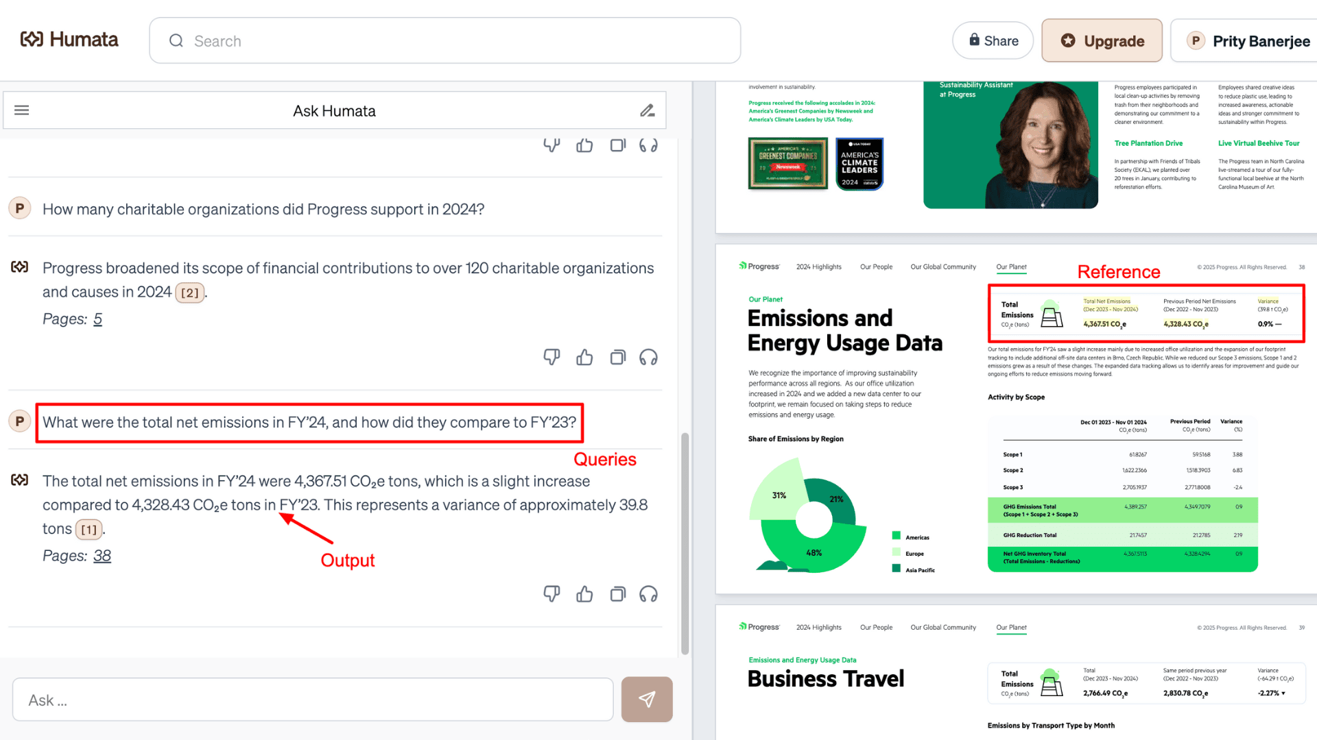 - High Accuracy: When I asked for facts from a CSR report, it provided the correct data with precision. Humata AI can even extract numbers from bar charts, graphs, and visuals.