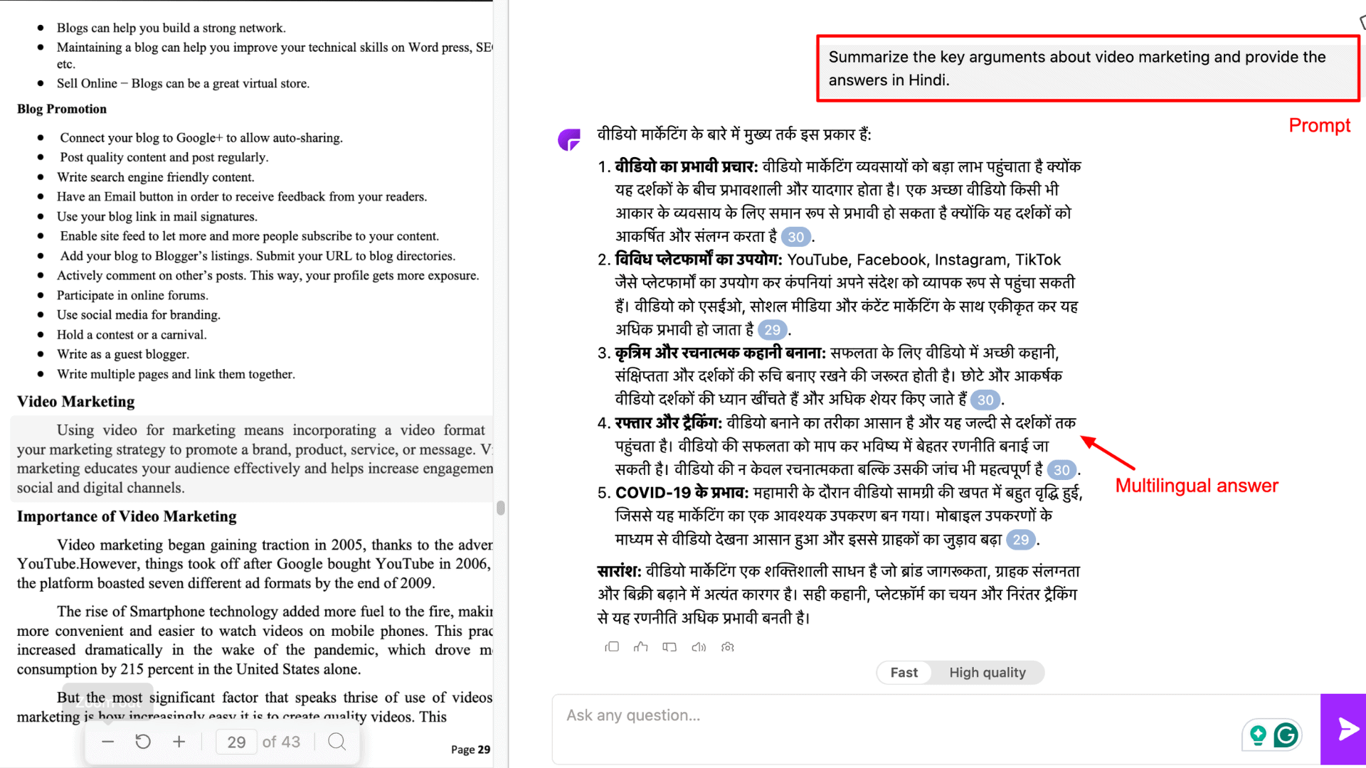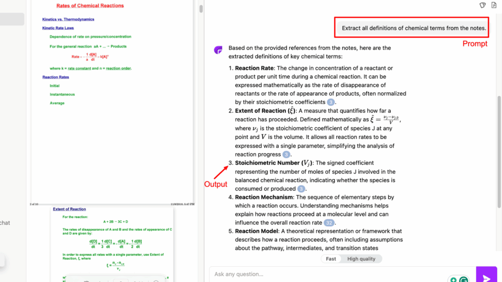 - Personalized Outputs: ChatPDF offers two output modes. The Fast mode is free, quick, and detailed, and the High Quality mode is for paid users.