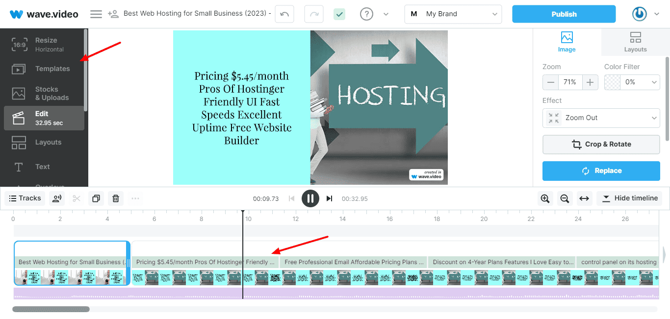 Wave Video is an innovative platform that offers a range of tools for video creation, video and audio editing, video marketing, etc. Its Text to Video Converter transforms text content and blog posts into engaging videos within seconds.