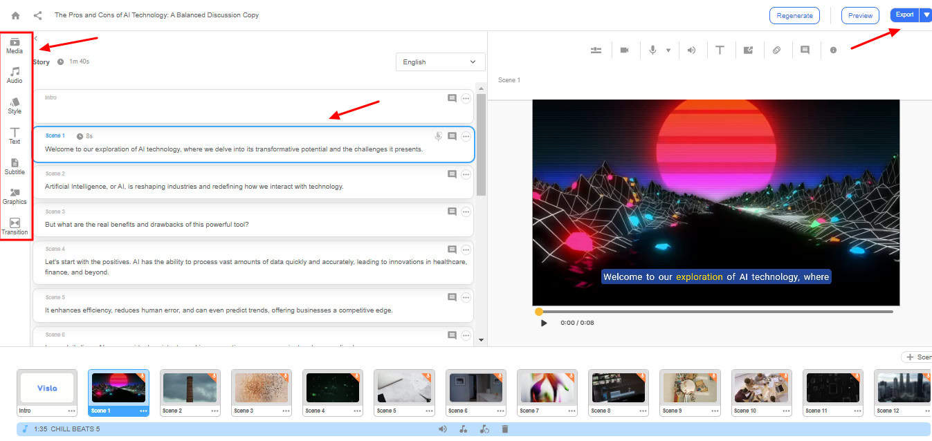 Anyway, Check out the AI video it generated with my idea: “Pros and cons of AI technology.”