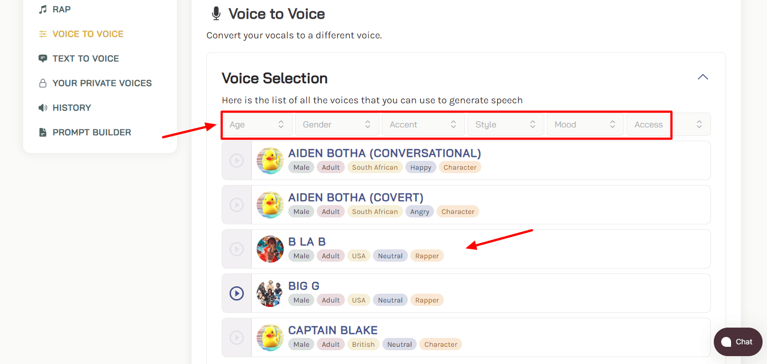 They have a huge library of 1000+ AI voices, with 20 professional voices and 980+ common voices. You get voice filters like categories, properties, similarity, voice pitch, etc. Altered also lets you upload your voice file to find voices that sound similar to it.
