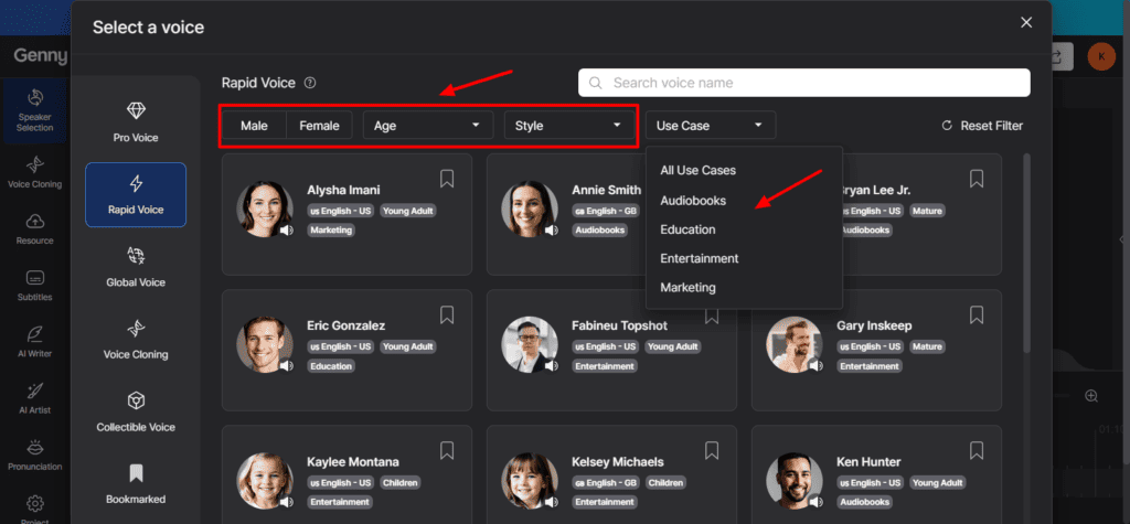 2) Genny by Lovo AI – Best for Multiple AI Voices