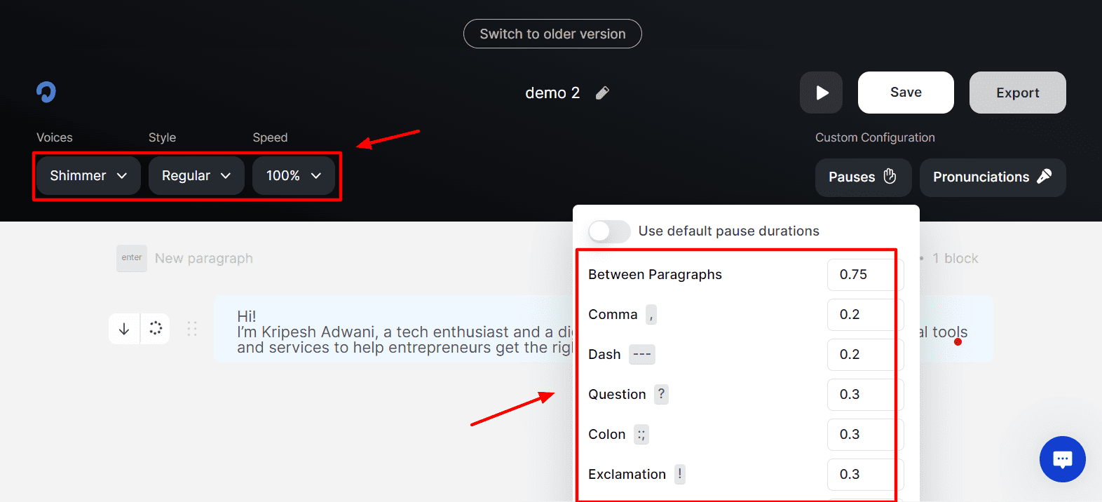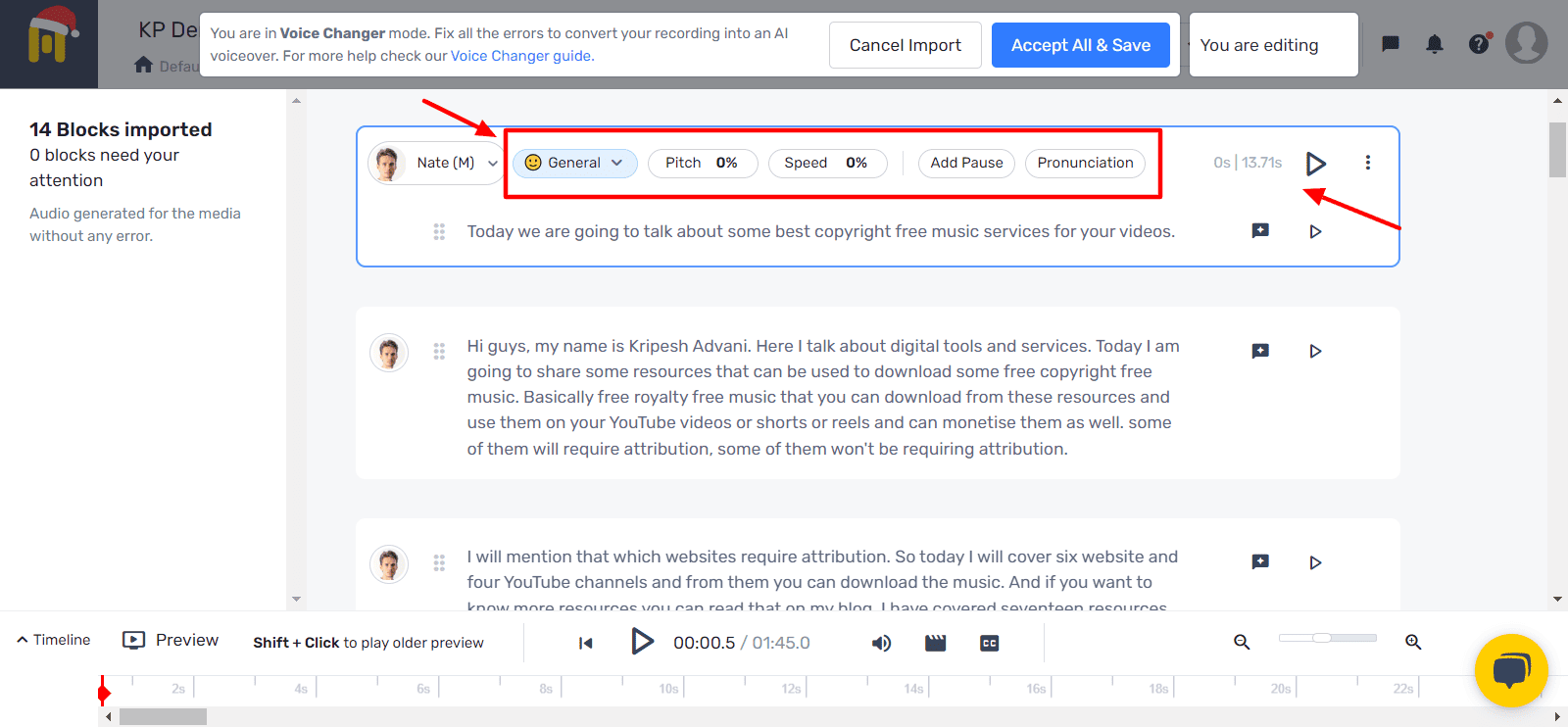 What struck me was the Emotions tab. It molded different voiceovers as per the emotion exceptionally well. The fearful tone was specifically accurate. They have also introduced the Indian English accent in their voice library now!