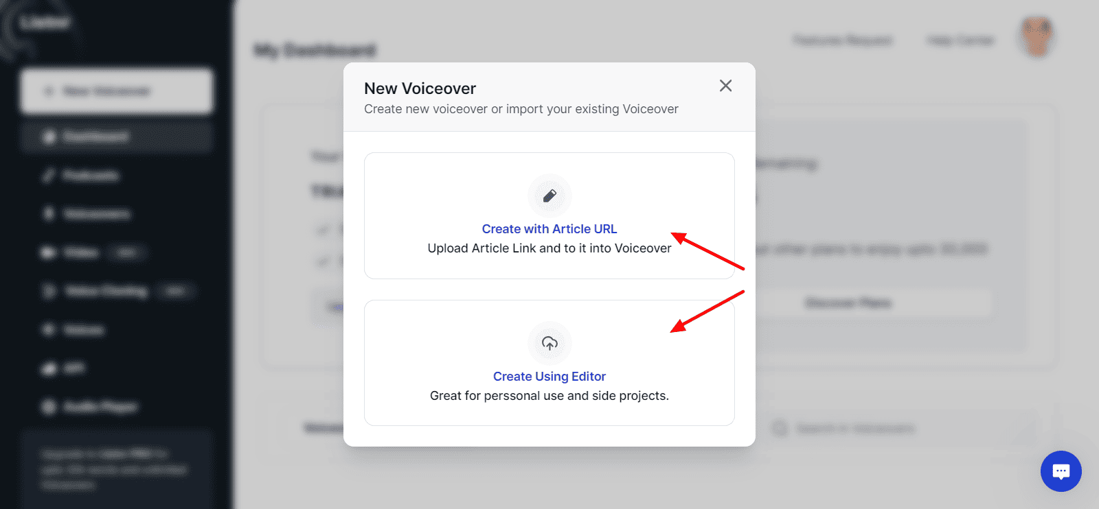 To get started, you can either upload your article link or directly use the editor to generate AI voices. Then, you can pick your preferred voice, speed, and style of speech. The free plan lets you generate 1000 words/month and get 1 GB of storage with 20 monthly exports.