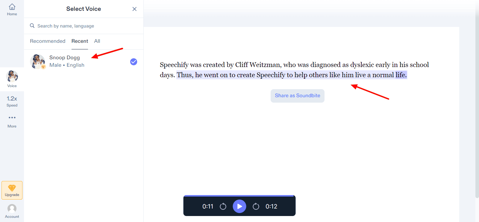 I loved the different voice styles supported by Natural Readers. However, I observed that the pronunciation of a few words was not accurate and some voices sounded robotic! The free plan also does not support downloading your generated voice either.