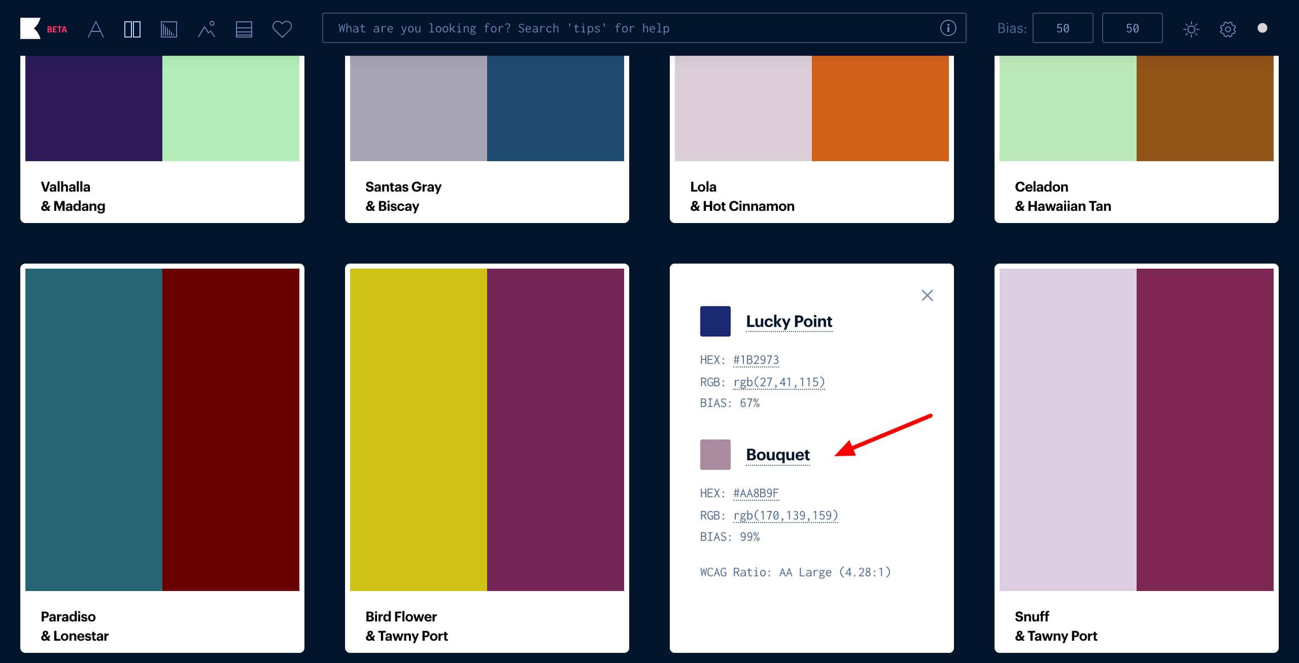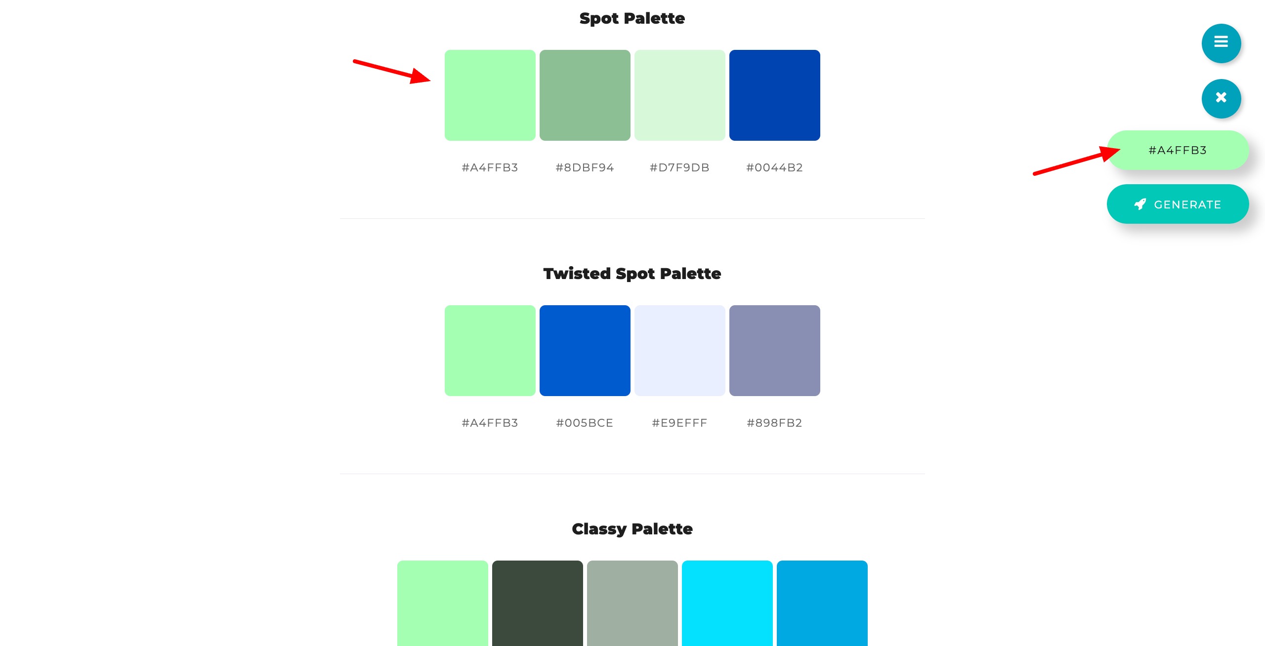 5. Palette tool: It generates color palettes of 4 colors.