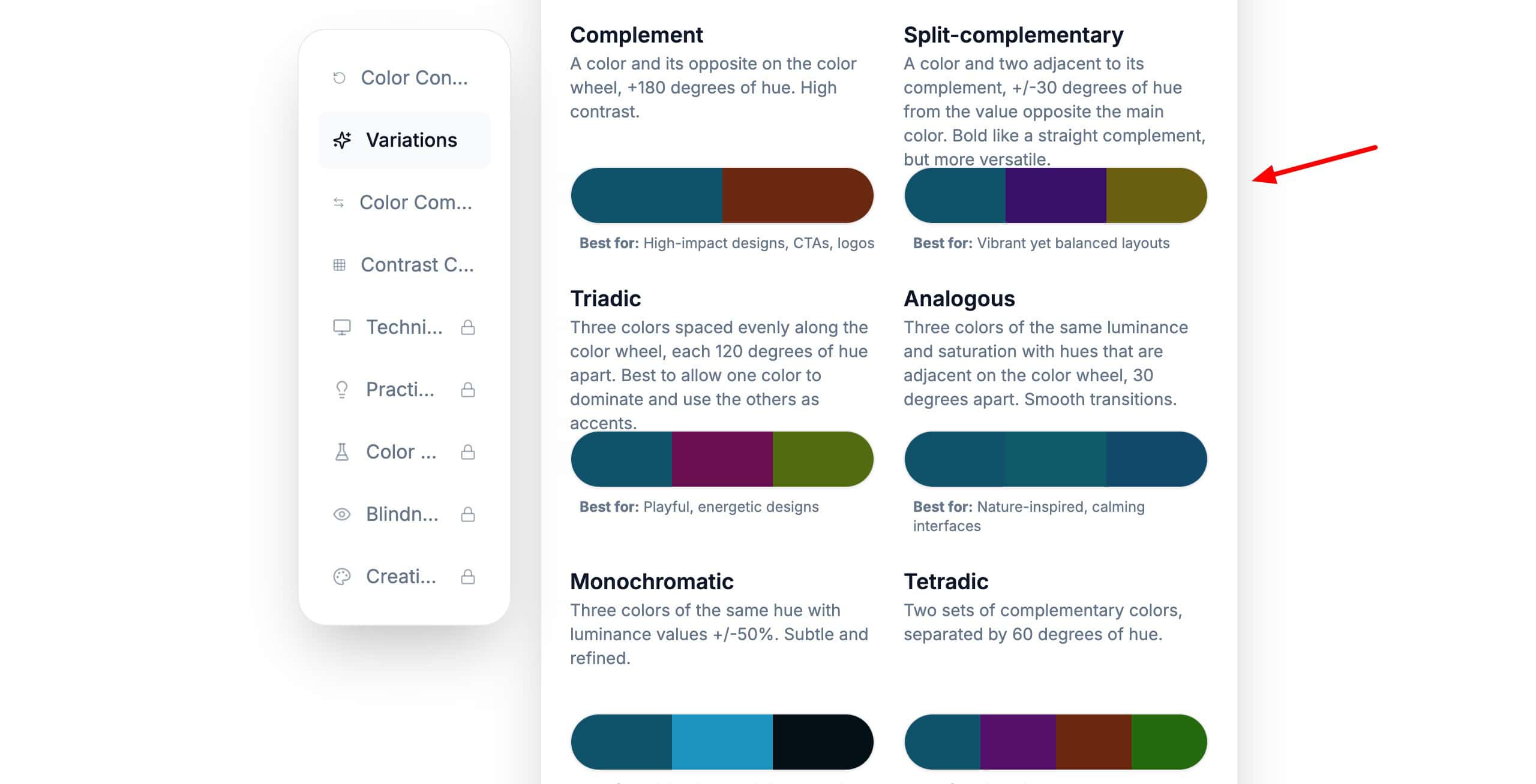 Canva Color Wheel is a simple and beginner-friendly tool for creating color combinations. It features color schemes like monochromatic, complementary, analogous, triadic, and tetradic to help you create attractive and bold color palettes.