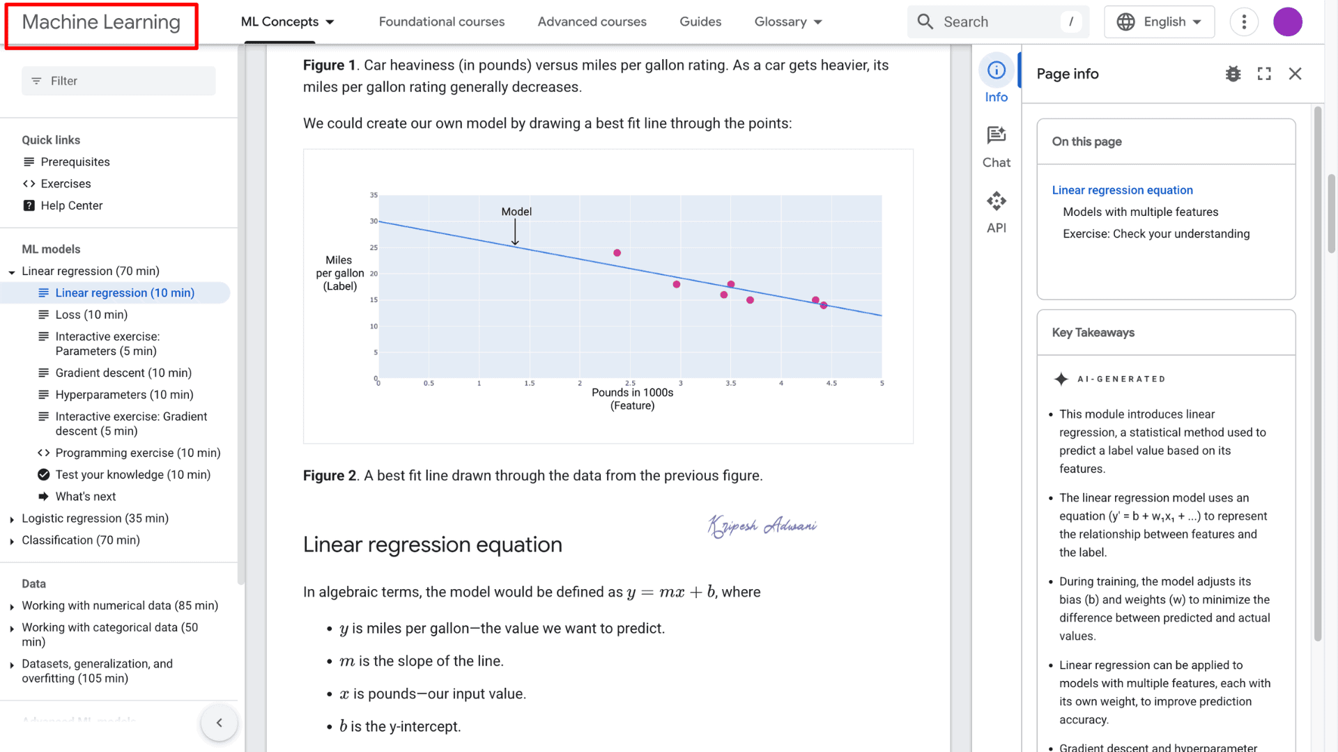 If you’re looking to gain both basic and advanced knowledge of machine learning in a single course, I’ll suggest just one course, Google’s MLCC. It’s a self-paced course that’s recently been updated and is perfect for beginners and intermediate learners alike.