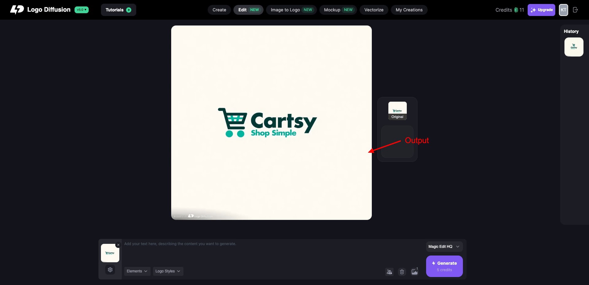 For each logo generation and edit request, 3 credits are consumed. So, its free plan is extremely limited. I found Arvin AI best for generating app and game logos. It creates highly visual and graphic logos.