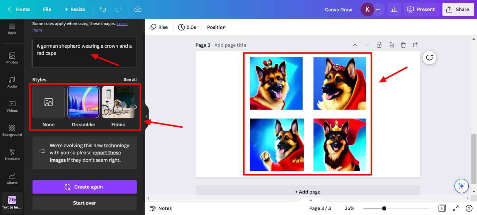 Finally, you can make use of elements, images, videos, audios, backgrounds, graphs and charts, etc, to create your design. Canva has recently integrated a range of AI tools on its free and Pro versions. Some AI tools that work on the free plan are: