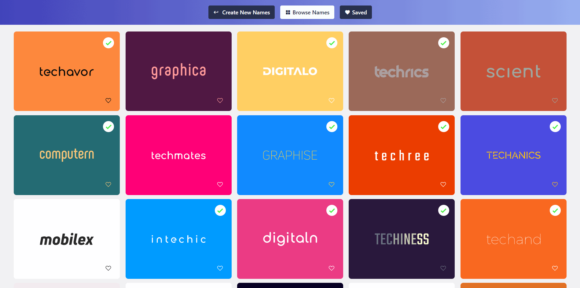 Namelix is an AI-powered business name generator by Brandmark.io. If you’re looking for just the right name for your website or business, Namelix can provide you with lots of interesting name ideas.