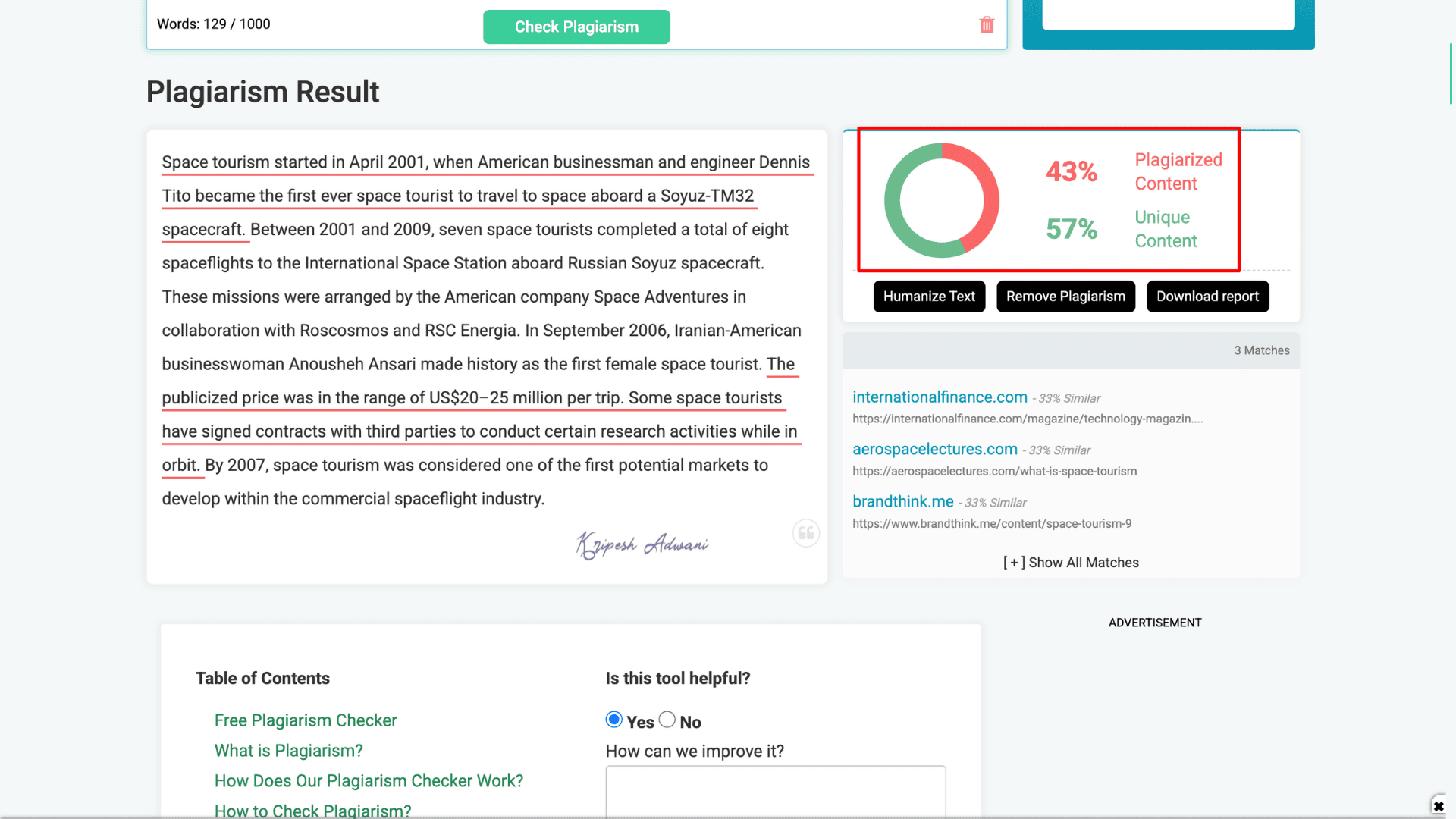 Plagiarism checker tools solve this problem. They automatically detect copied or similar content by crawling vast online databases. Once flagged, you can edit those sections to make your content truly original.