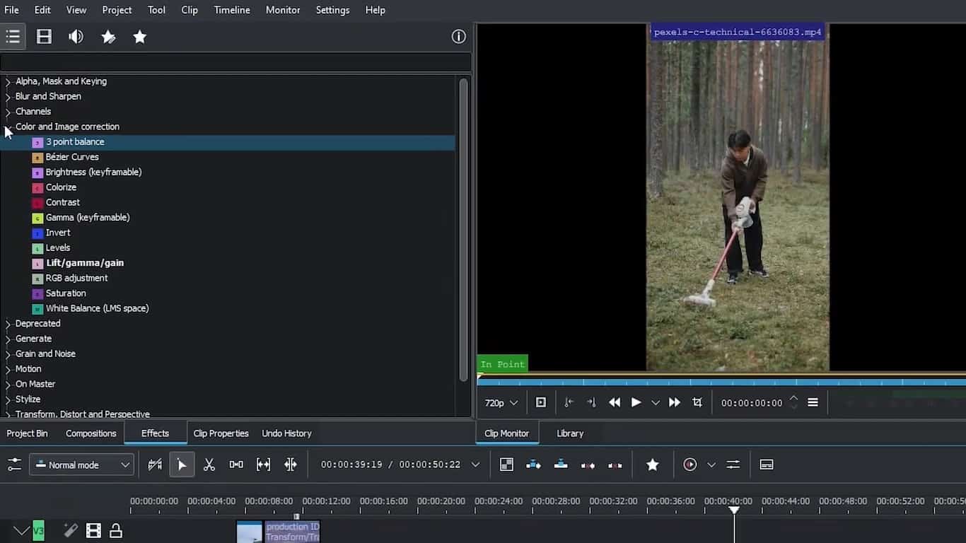 Even though the interface of color tools is a little complex, I found the color adjustment tools to be quite advanced in Kdenlive. You can adjust the brightness, contrast, saturation, gamma, invert colors, J point balance, RGB adjustment, and a lot more!