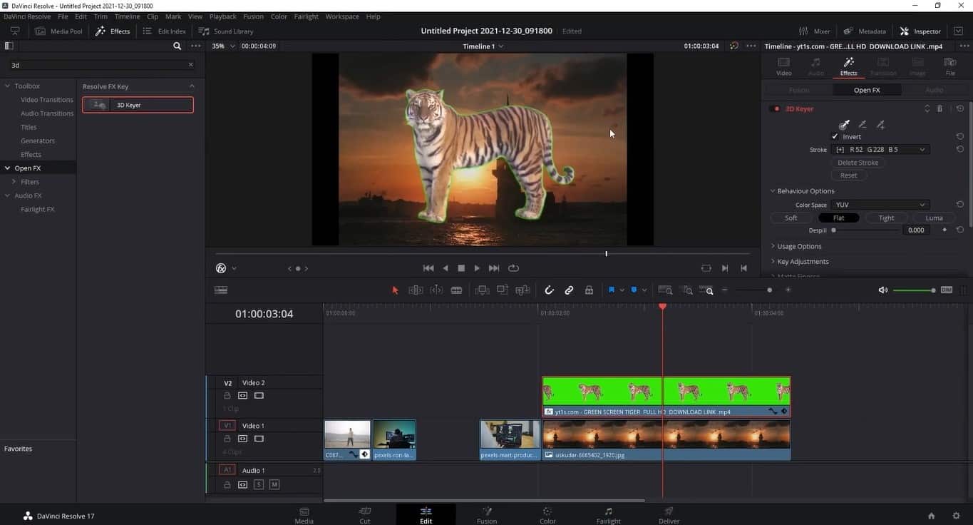 With the 3D Keyer option, you can also implement the Chroma Key feature and remove the green background from your images or clips. It also offers a variety of Blur options, Gaussian Blur being the most popular!