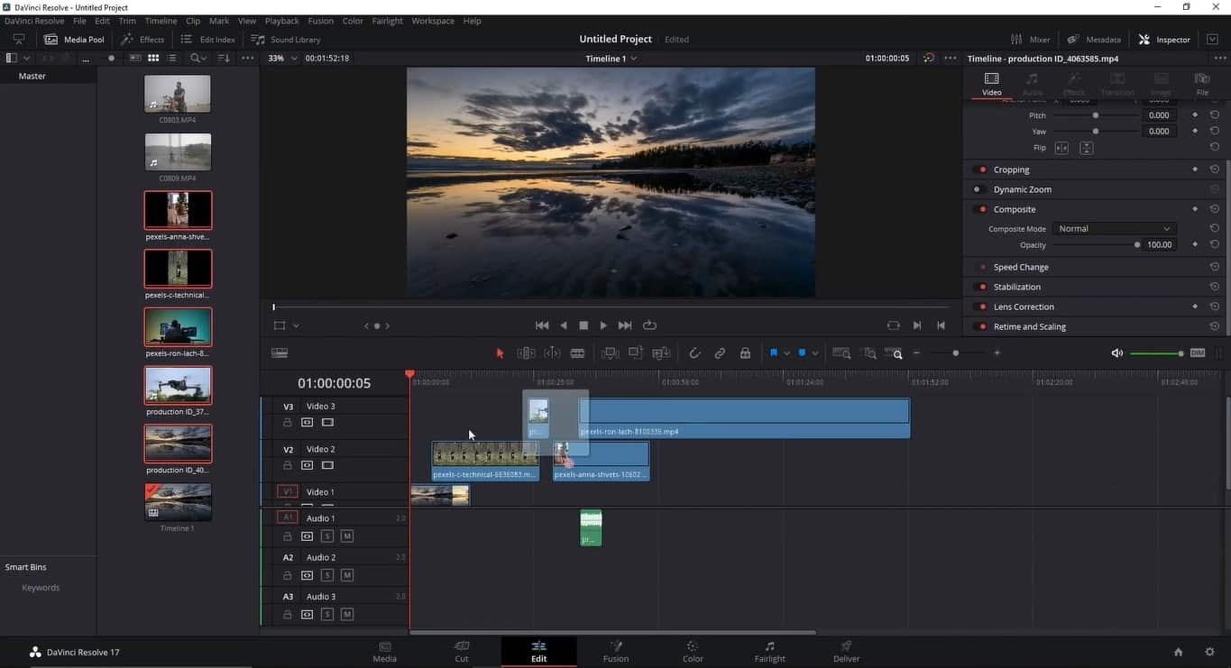 DaVinci Resolve lets you edit with ease on multiple layers. You can add as many tracks, clips, and image overlays as you want and have a smooth editing experience.