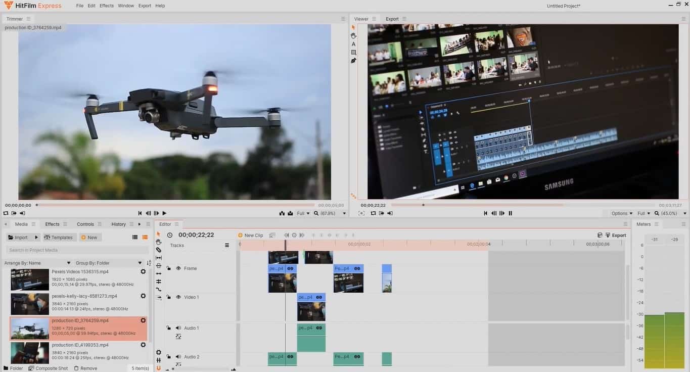 You can easily drag and drop multiple files on the project mounter or directly on the video timeline as well. The interface might be hard for beginner users, but experienced editors will find it friendly.