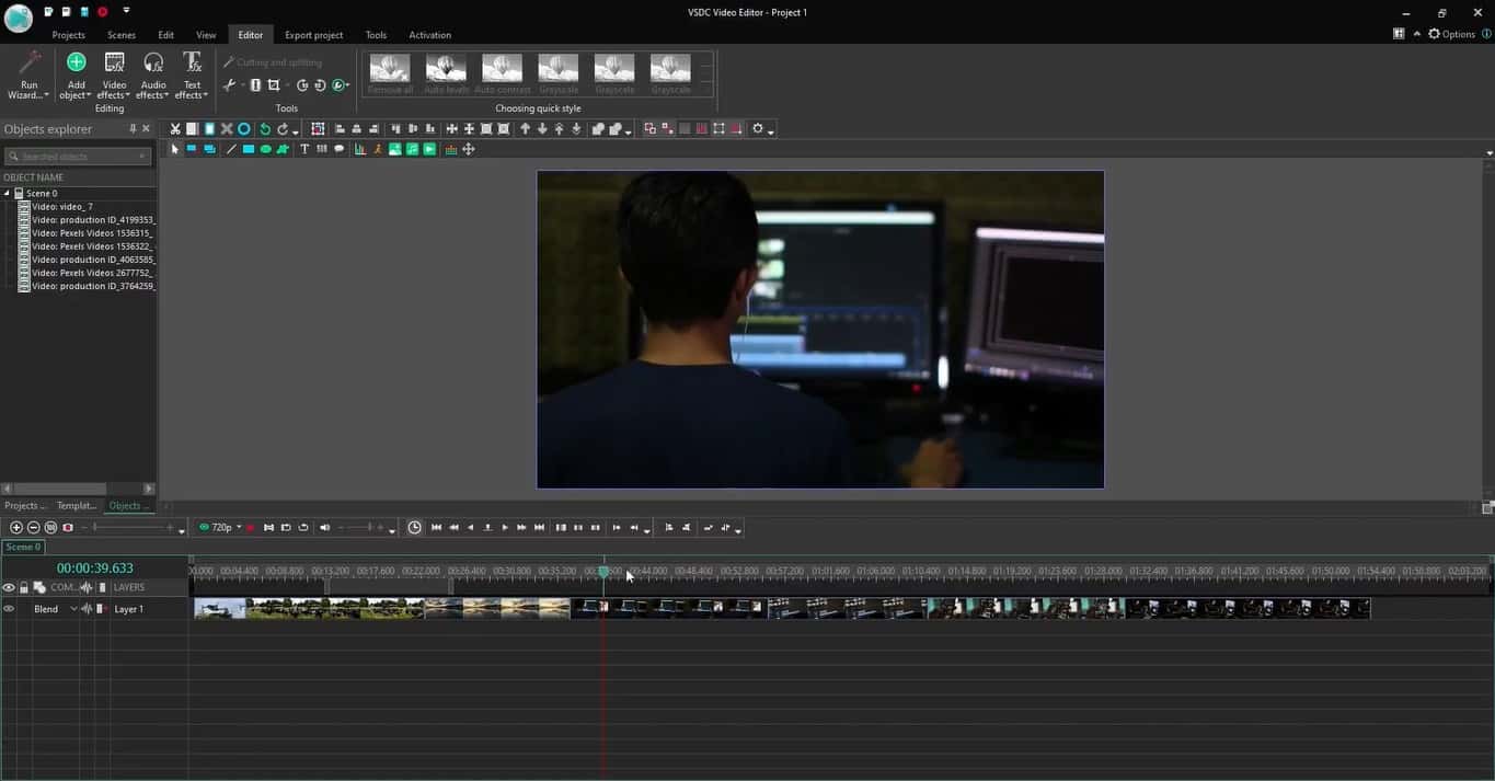 VSDC lets you upload multiple files to different layers and edit them separately. For example, you can add photos on top of your video files and use different text effects and overlays on them.