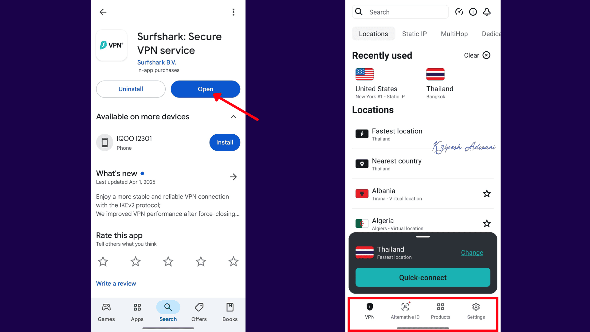 Before you start gaming, setting up your VPN properly ensures a smooth and lag-free experience. Here’s a step-by-step guide for both desktop and mobile. I’m using Surfshark for a quick demonstration. You can select any paid VPNs in India.