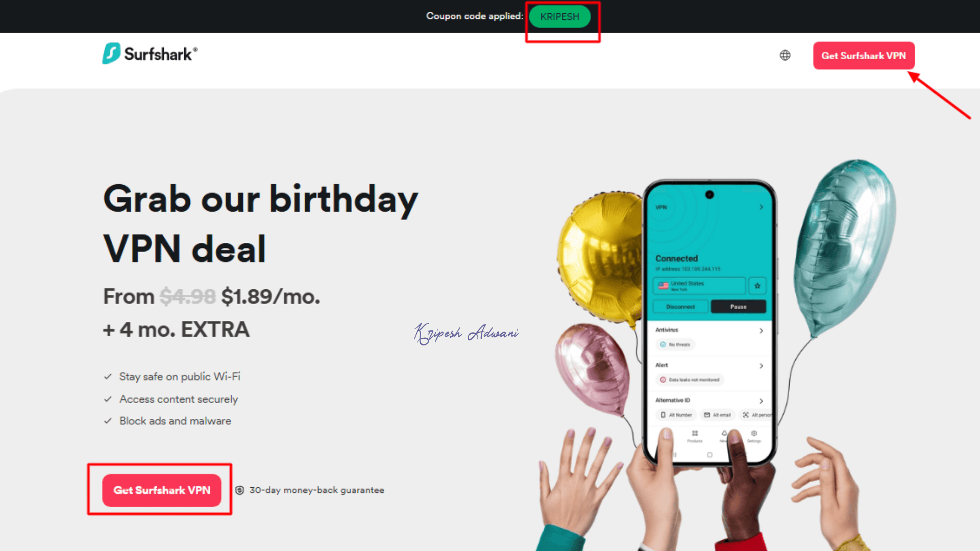 For a VPN with robust antivirus protection, consider Surfshark One’s 2-year plan. It costs approximately ₹6220 ($72.52), lowering the monthly price from $17.95 to $2.59. Use my link for an additional 4 months of free access.