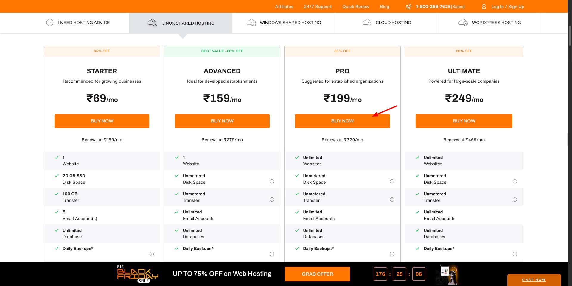 | Ultimate | ₹249/mo | ₹299/mo | ₹349/mo | ₹399/mo | BIGBFSALEDOMSSL | Get Ultimate Plan |