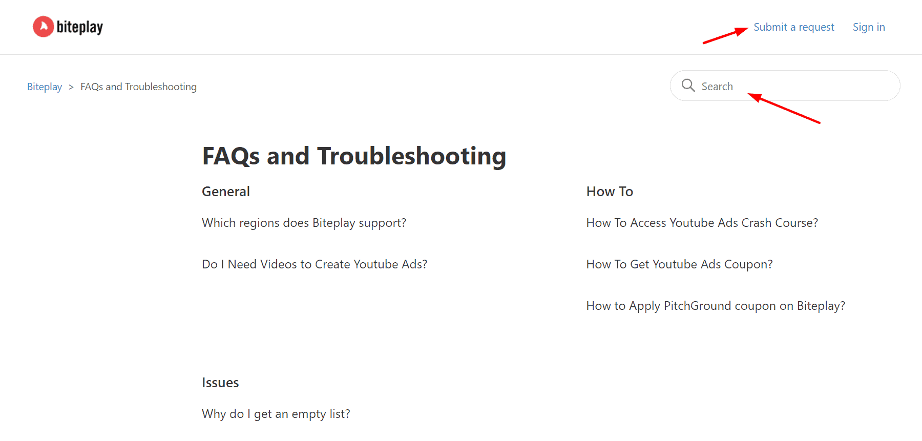 Biteplay offers support through email tickets. They also have a limited knowledge base of articles and troubleshooting FAQs. The articles are well structured and annotated, which is helpful for beginners.