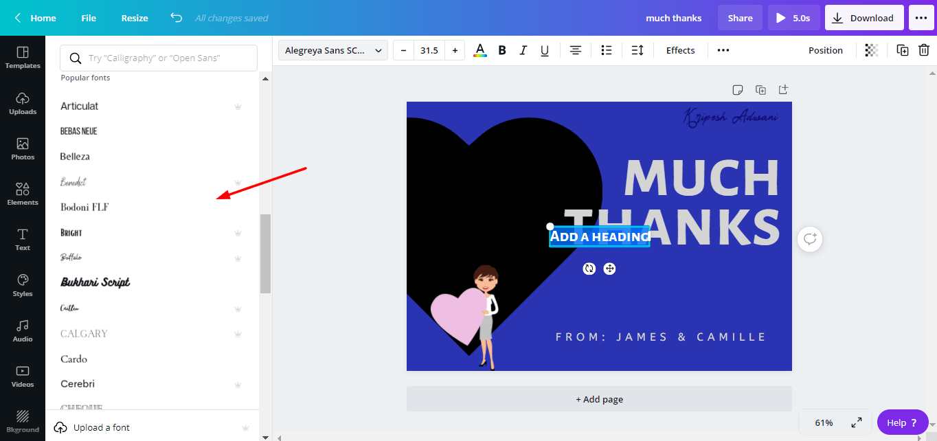 Canva Pro also allows you to upload Custom fonts. This is great for aligning your designs according to your brand.