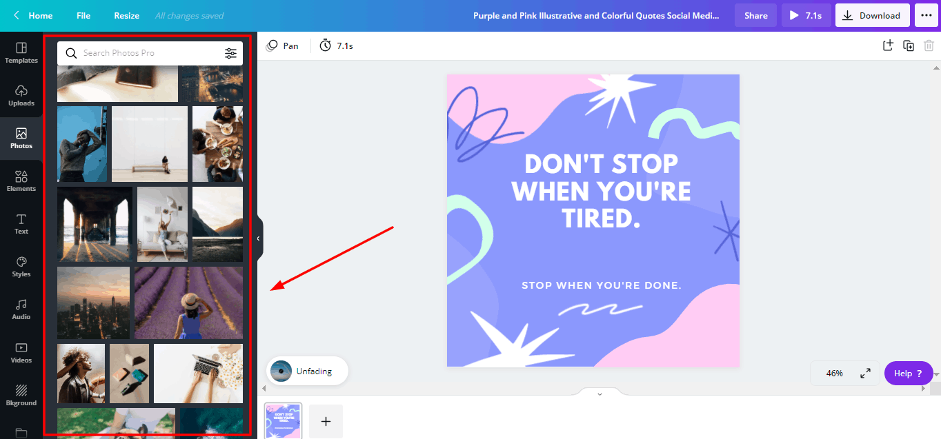 Stock images are one of the most important elements in a graphic design tool. And Canva, fortunately, does not disappoint a bit in this case!