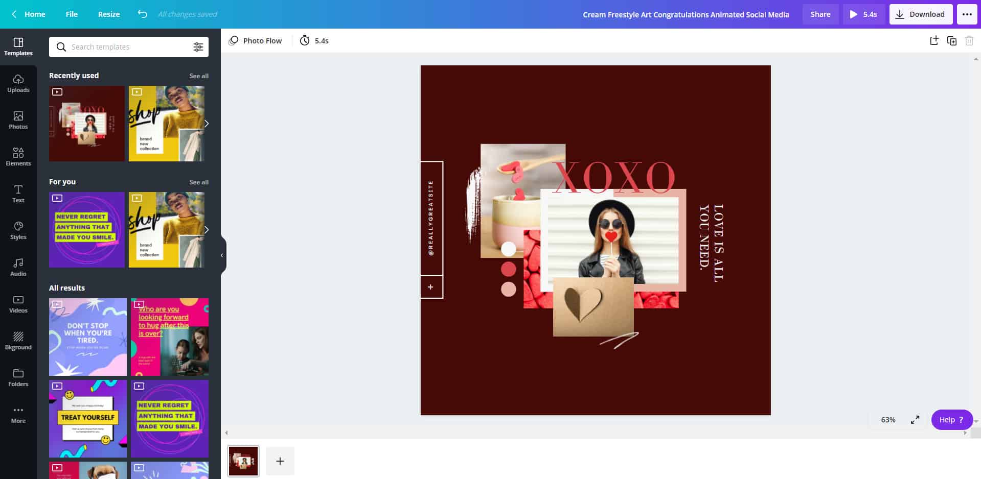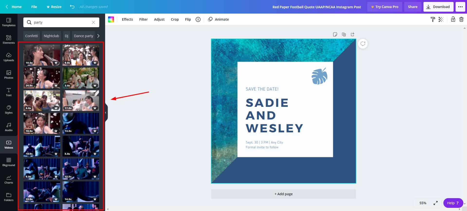 However, videos on Canva are also repetitive at times, and you cannot filter the results by free videos.