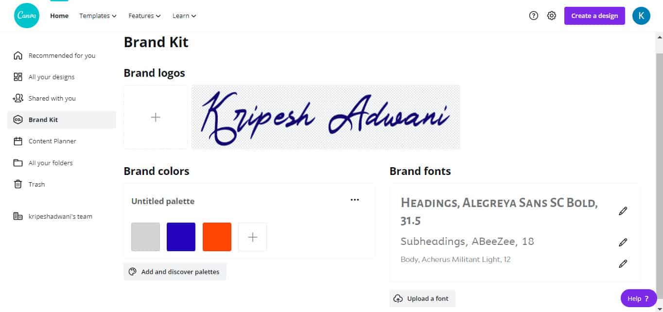 Canva Free has no Brand Kit.