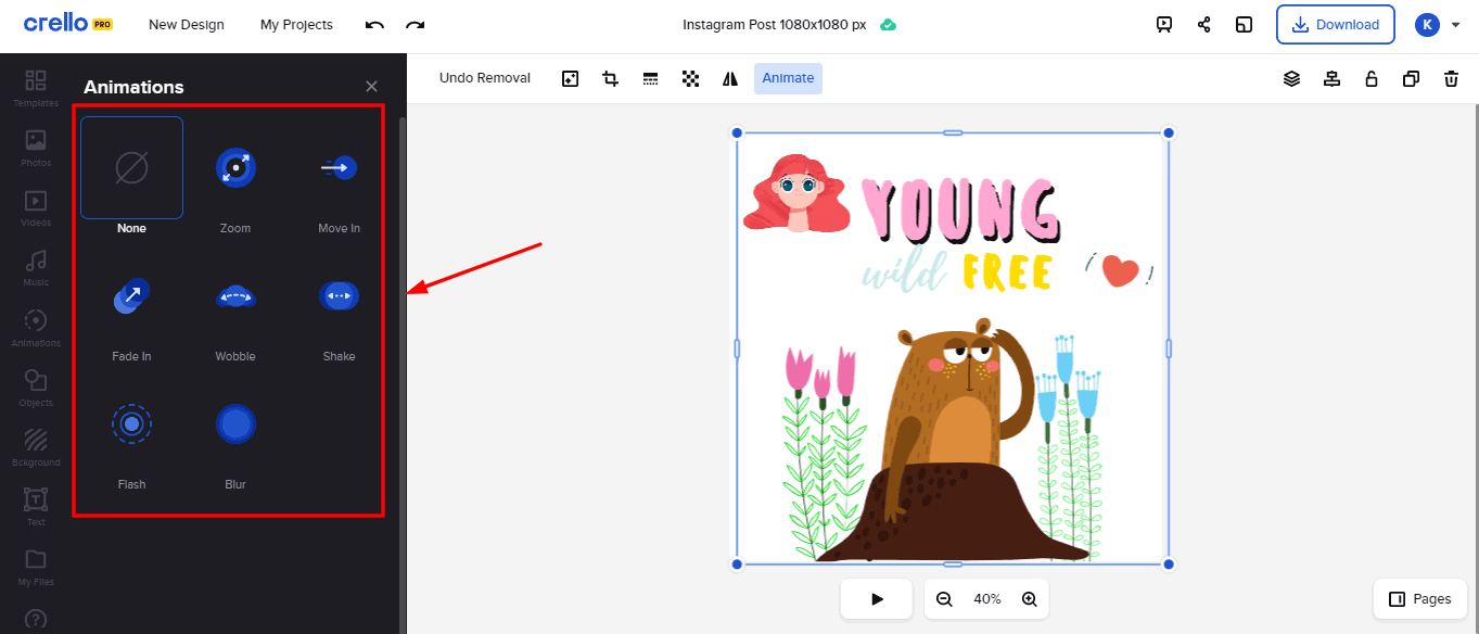 Crello Animate effect