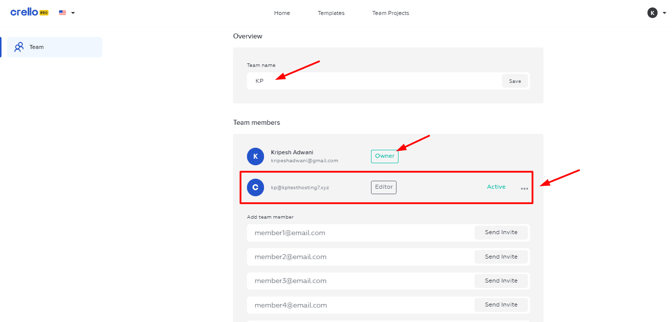 Crello Pro lets you invite up to 10 members for collaboration. The team members can create, edit, and access all the designs under a team.
